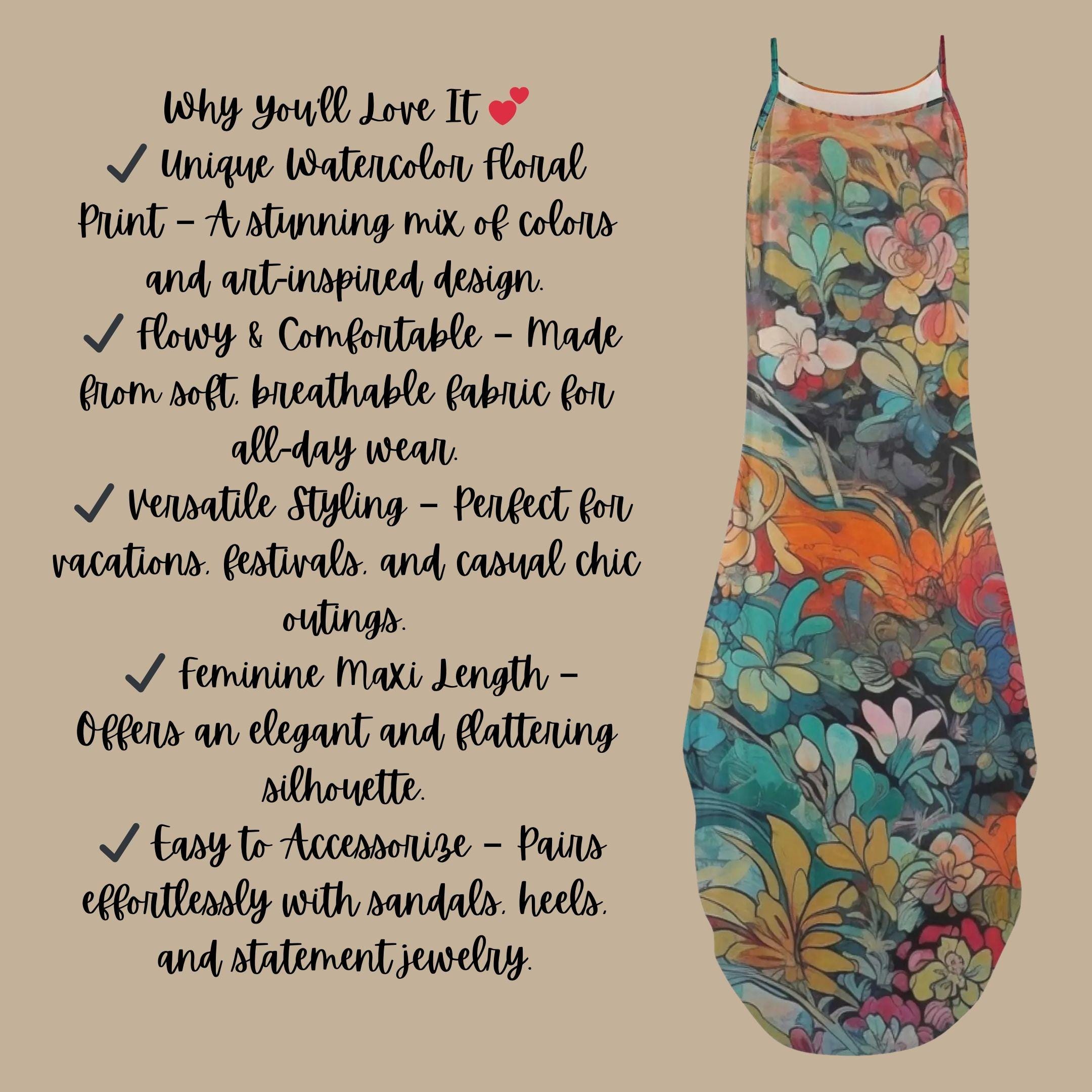 Step into summer with this bohemian floral maxi dress πΈπ¨! Designed with a breathtaking watercolor-inspired print, this flowing dress is the perfect choice for sunny beach days, tropical vacations, or casual summer outings βοΈποΈ. The vibrant mix of blues, oranges, and yellows gives off an artistic, hand-painted effect, making this a unique addition to any wardrobe πβ¨.