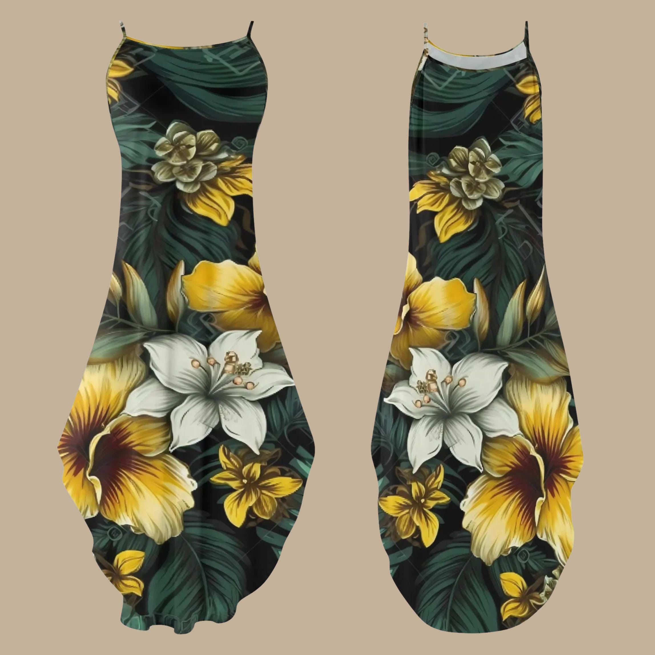 π΄ Embrace tropical elegance with this stunning floral maxi dress featuring vibrant yellow and white hibiscus blooms against a deep green foliage background. πΊ The flowy and lightweight fabric drapes effortlessly, making this dress perfect for summer getaways, beach vacations, and resort lounging. π The spaghetti straps and breezy silhouette offer a comfortable yet stylish fit, ensuring you stay cool and chic in warm weather. Whether youβre heading to a tropical wedding, a sunset dinner, or a casual summer outing, this dress is your go-to for effortless glamour. π Pair it with sandals for a daytime look or elevate it with heels for an evening affairβeither way, youβll radiate island-inspired beauty! πΉβ¨