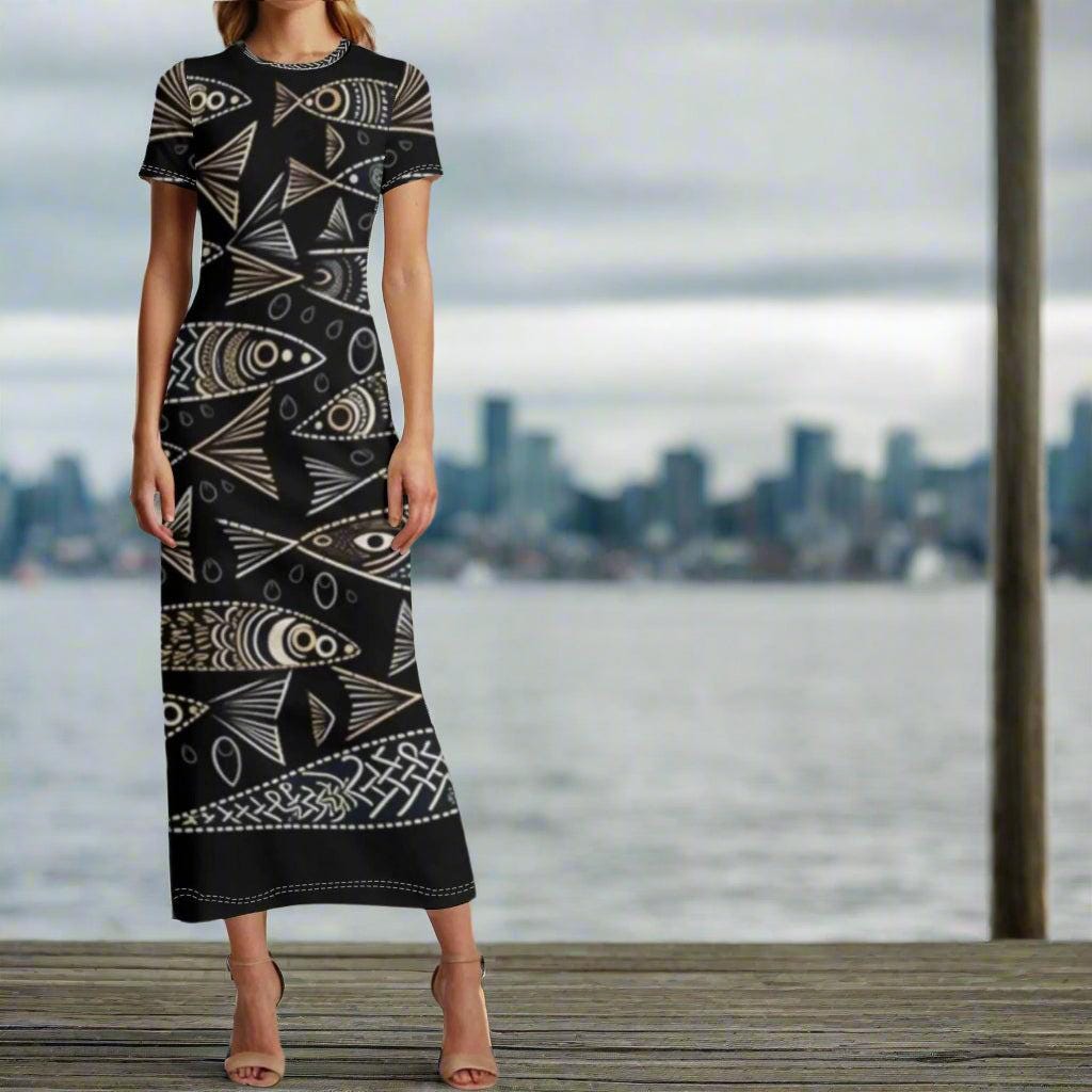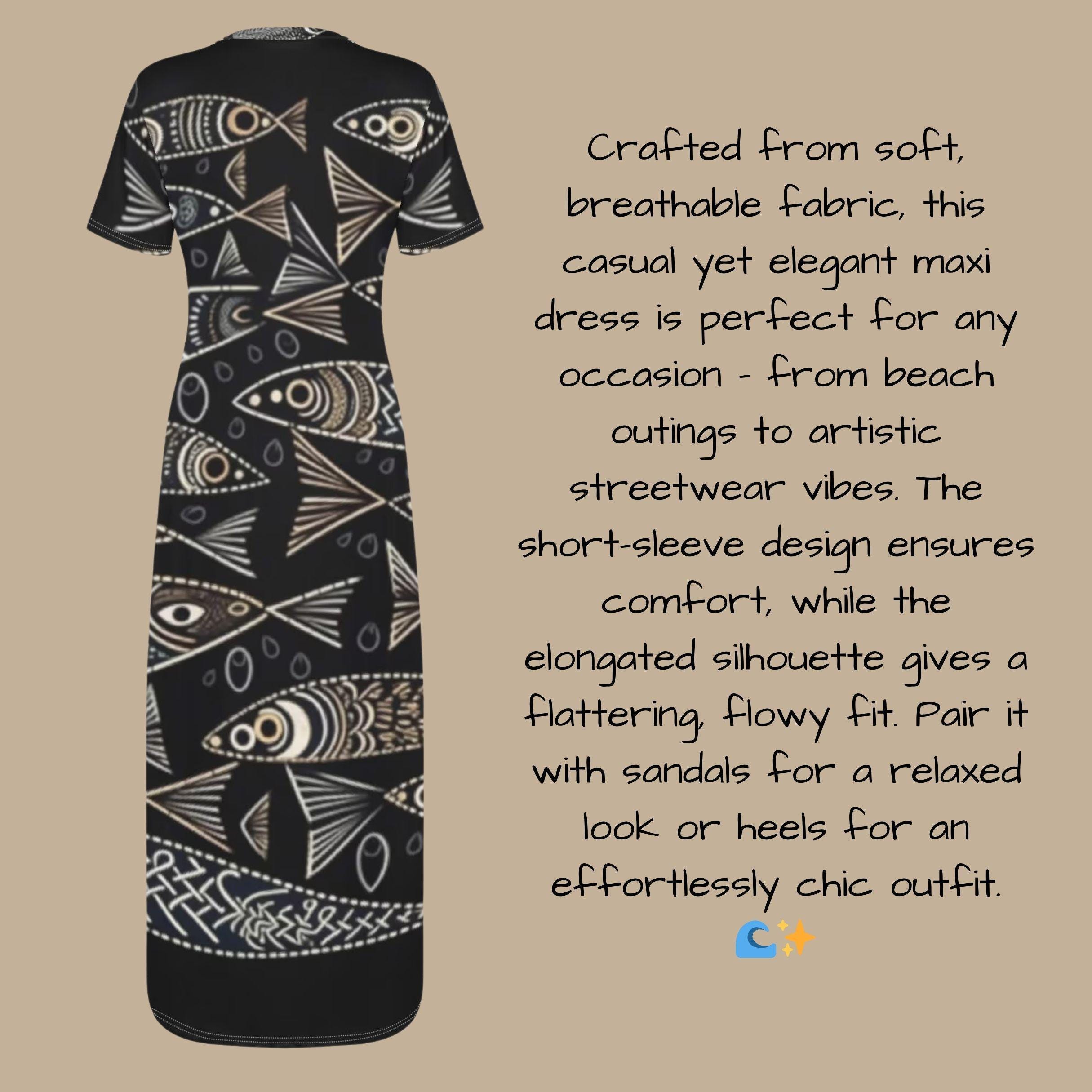 Dive into bold, artistic style with this Tribal Fish Print T-Shirt Maxi Dress! π£ Featuring a striking black and beige tribal fish pattern, this dress is a wearable work of art. The ocean-inspired print is reminiscent of traditional tribal motifs, creating a unique, bohemian aesthetic. Crafted from soft, breathable fabric, this casual yet elegant maxi dress is perfect for any occasion - from beach outings to artistic streetwear vibes. The short-sleeve design ensures comfort, while the elongated silhouette gives a flattering, flowy fit. Pair it with sandals for a relaxed look or heels for an effortlessly chic outfit. πβ¨ π€ Material: Lightweight & breathable fabric π Style: Boho, tribal, ocean-inspired, artistic π Perfect for: Casual wear, summer vacations, art lovers, unique fashion enthusiasts β¨ Pair it with: Sandals, boho jewelry, or a sun hat for a statement look Make waves with this one-of-a-kind tribal fish maxi dress! πππ
