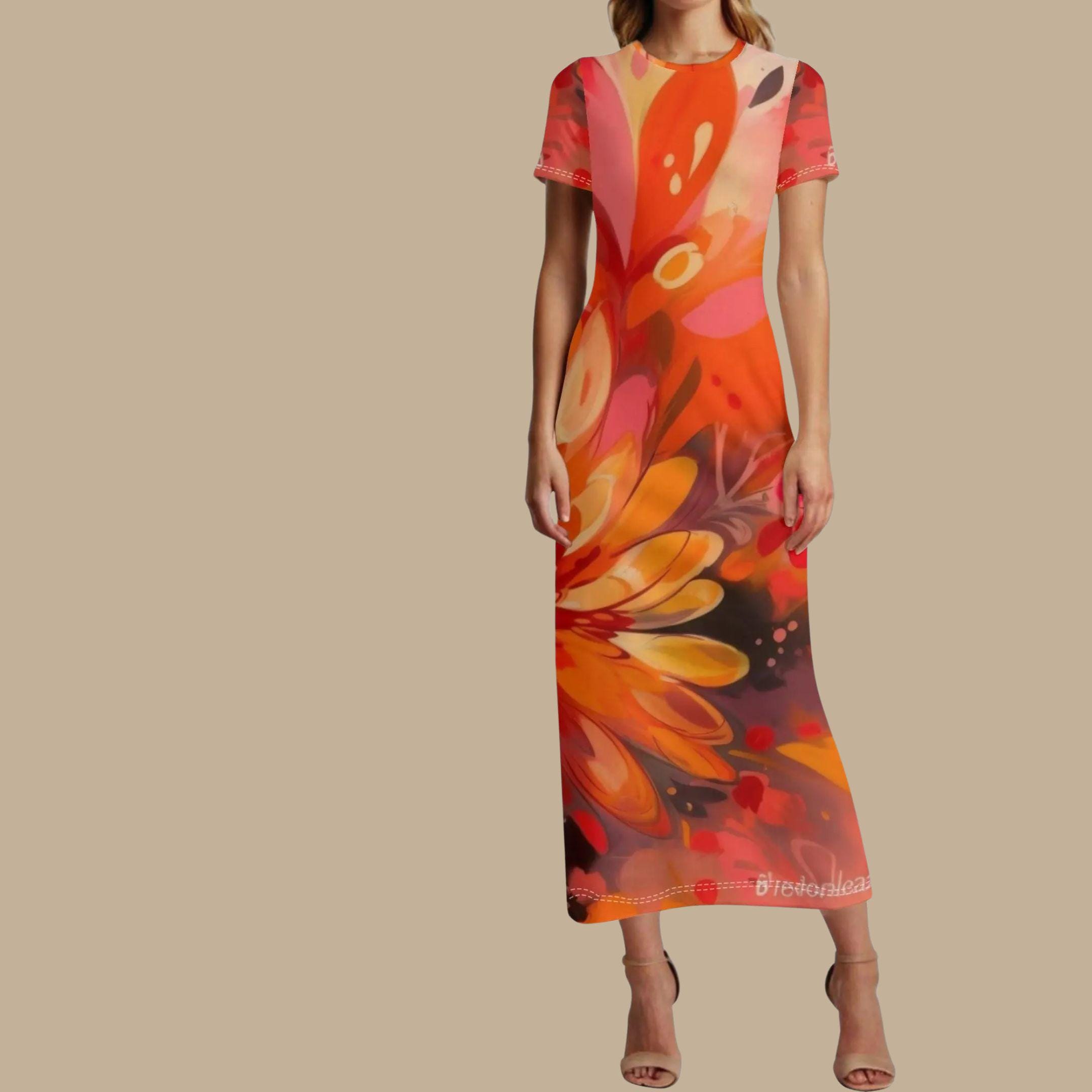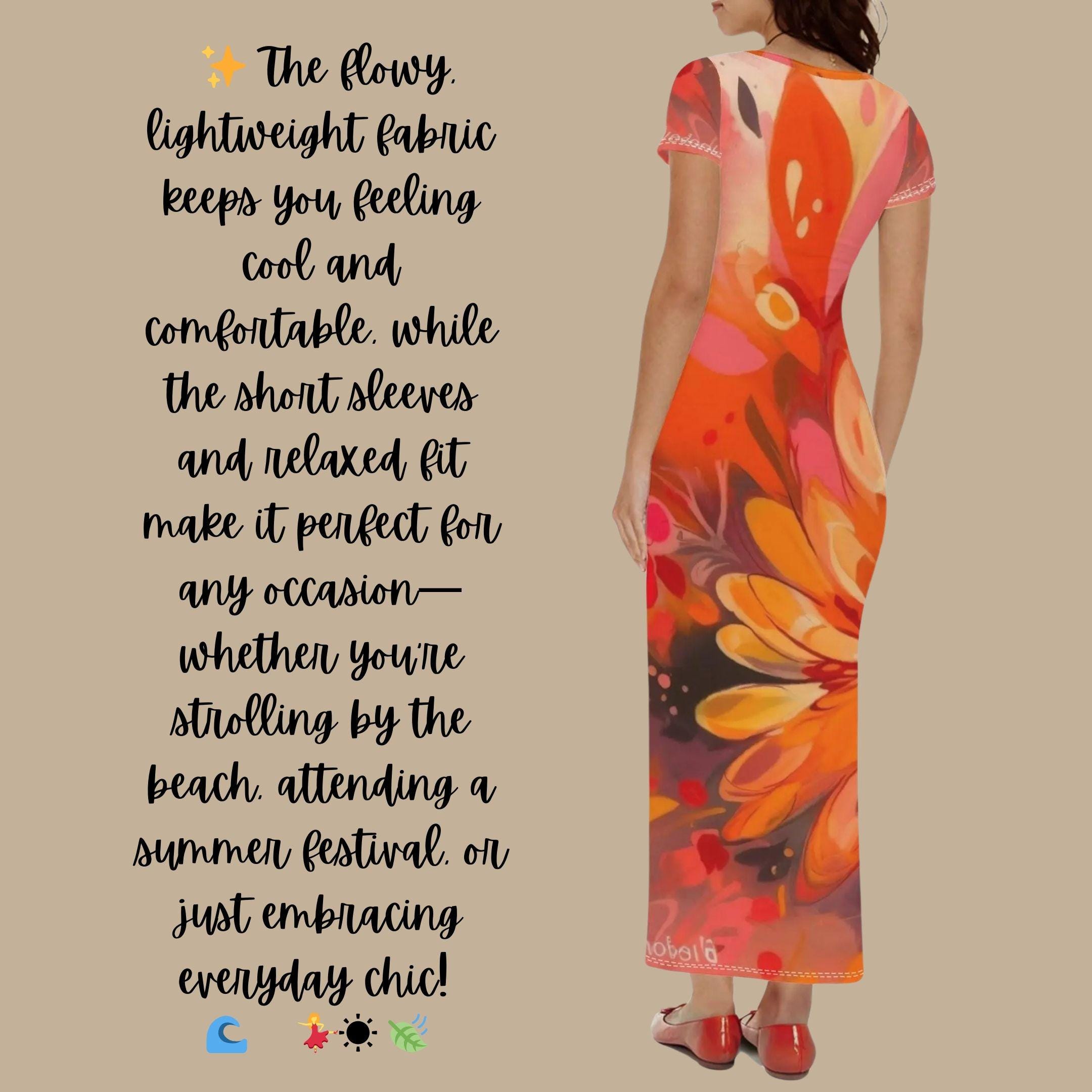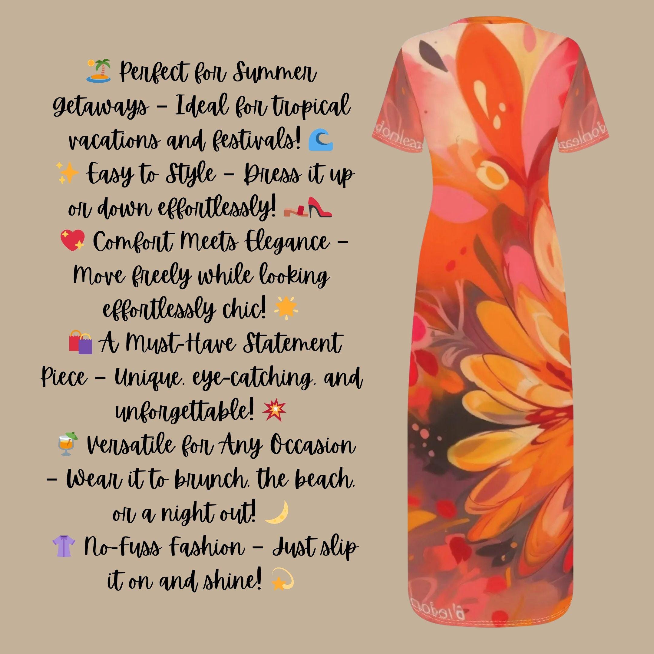 Make a bold and beautiful statement with this vibrant floral maxi t-shirt dress! πΈ Designed to turn heads, this stunning abstract dress features rich hues of orange, pink, red, and yellow, blending together like a painted masterpiece. π¨β¨ The flowy, lightweight fabric keeps you feeling cool and comfortable, while the short sleeves and relaxed fit make it perfect for any occasionβwhether you're strolling by the beach, attending a summer festival, or just embracing everyday chic! π Pair it with sandals for a relaxed daytime look or heels for a bold, sophisticated vibe. No matter where you go, this dress will make sure all eyes are on you! ππ₯