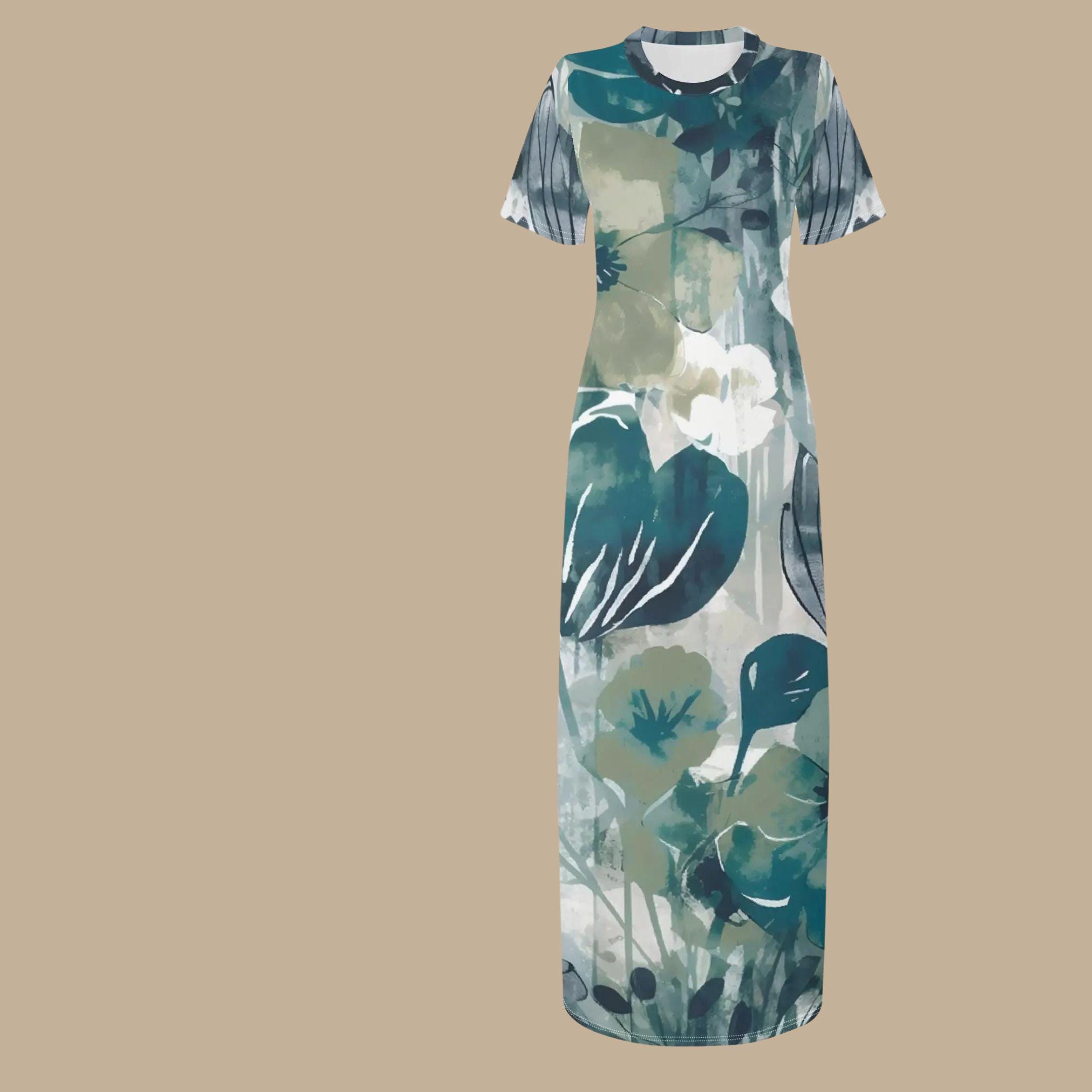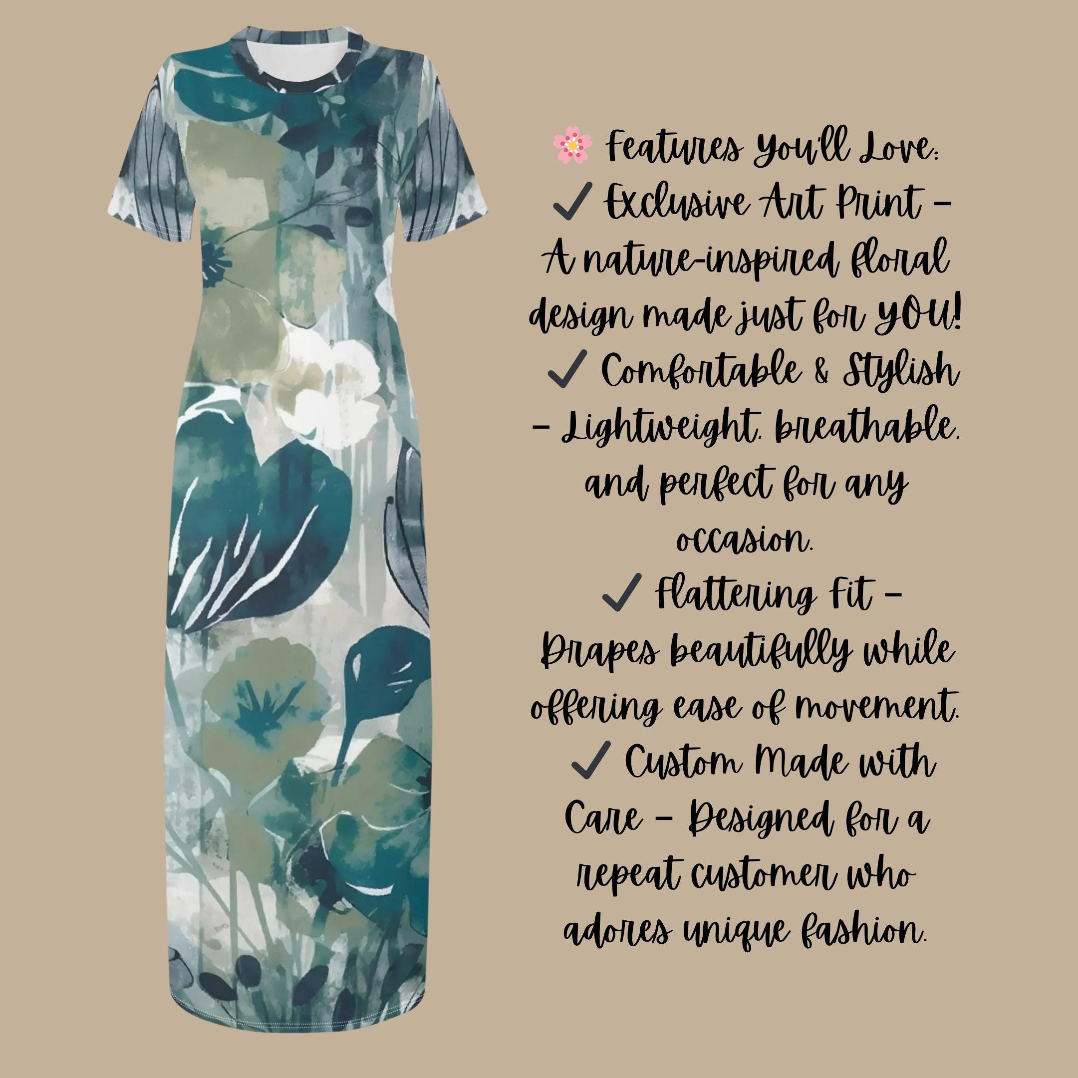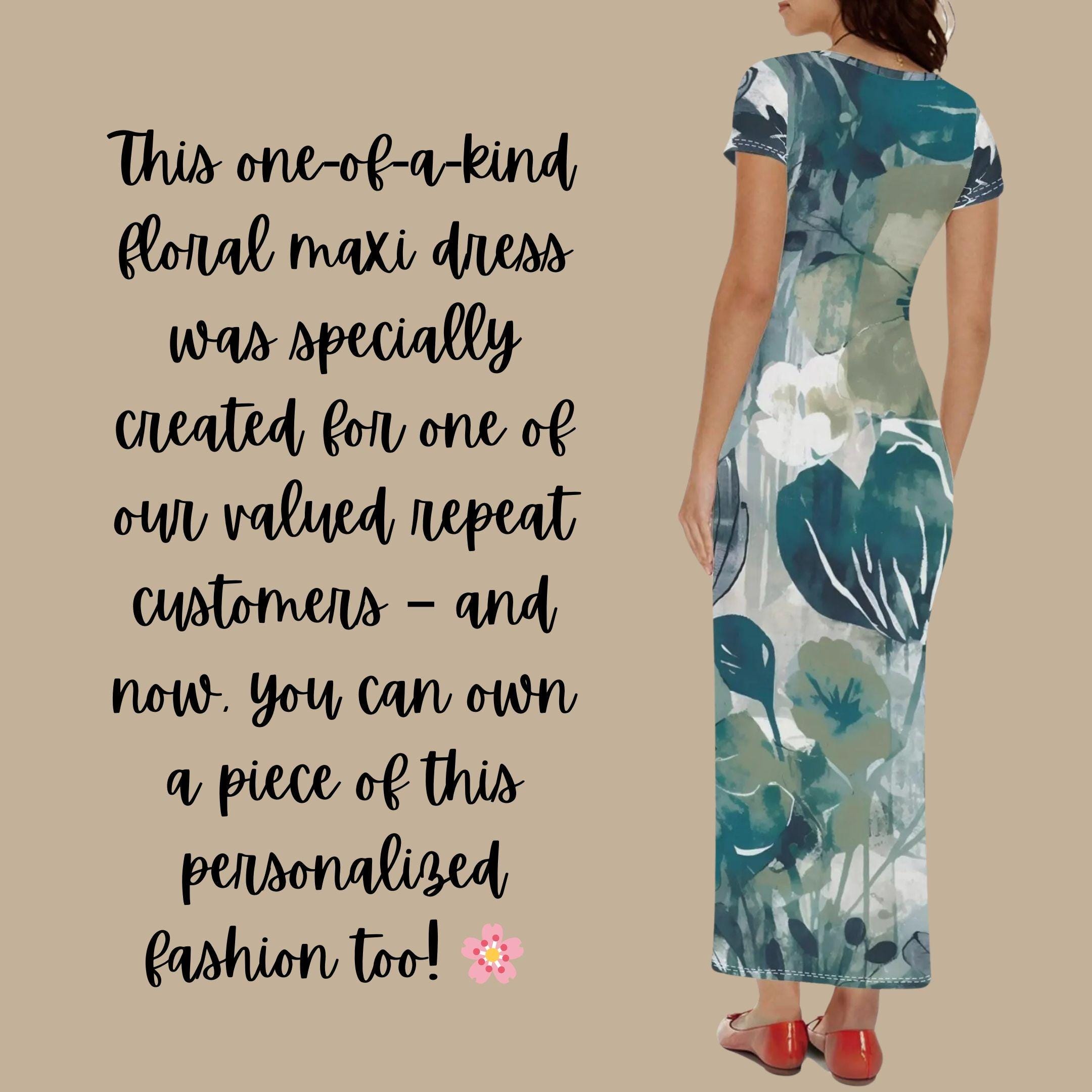 Designed as a custom request from a cherished repeat customer, this floral maxi dress is as unique as she is! Featuring an exquisite watercolor-inspired floral print, this long dress brings elegance and artistry together in a wearable masterpiece.