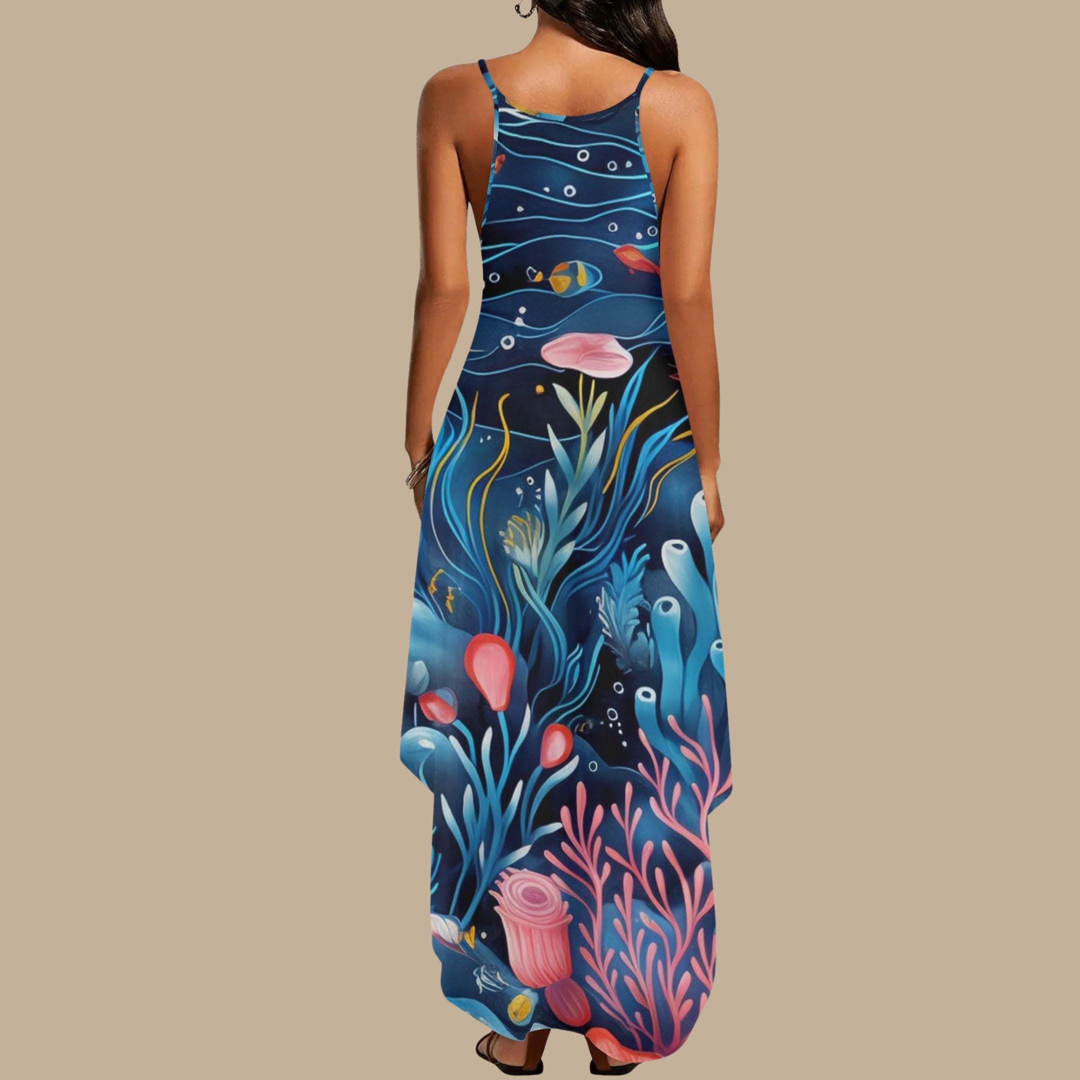 The sleeveless silhouette flows effortlessly, perfect for warm summer days, beach vacations, or simply when you’re ready to make a splash. Whether you're channeling mermaid energy or just love a bold, artistic look—this dress is your invitation to dive in.