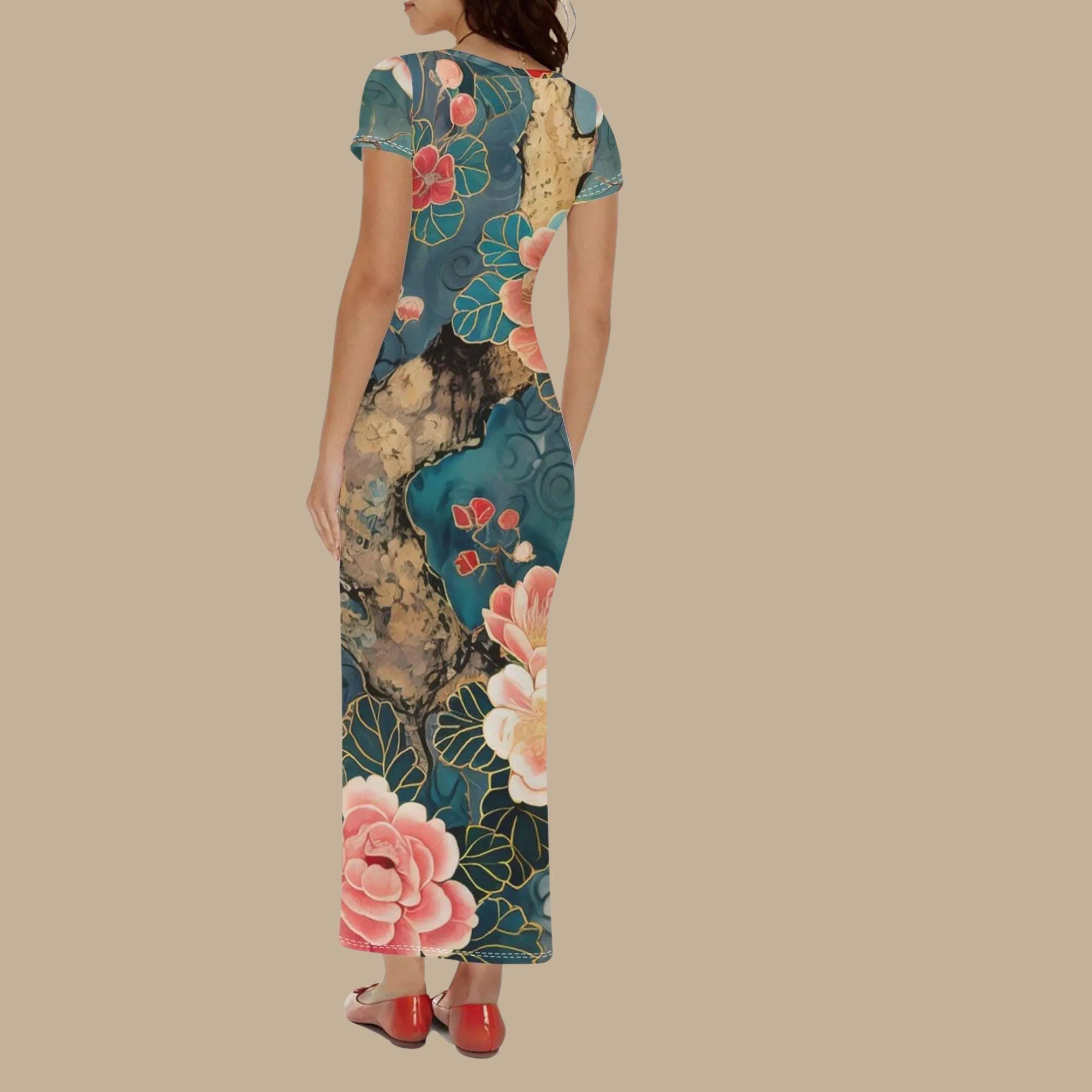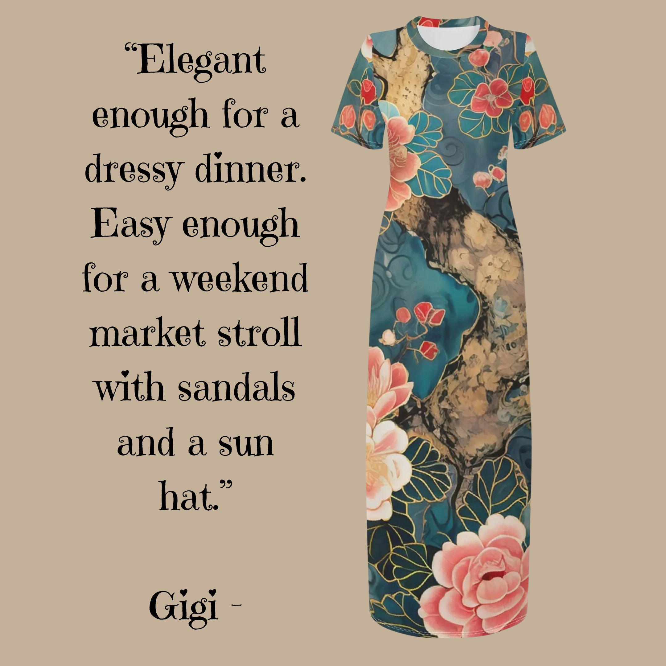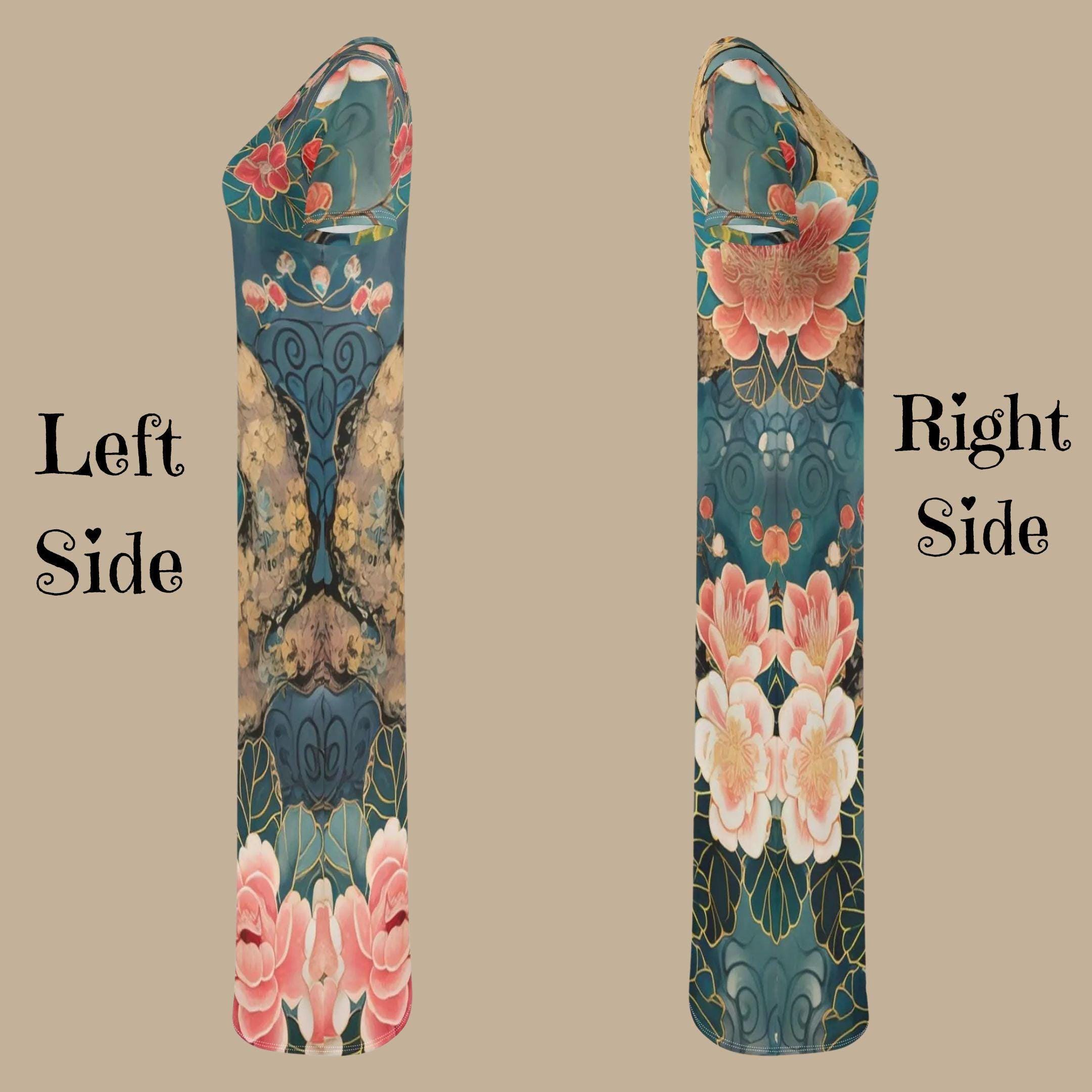 Wrap yourself in the artistry of nature with our Teal Blossom Tree T-Shirt Maxi Dress 🌳🌸 - a bold, painterly tribute to timeless beauty. Featuring a rich teal background, sweeping tree trunk accents, and lush coral-pink blossoms lined in soft golden veining, this original design is both tranquil and statement-making. ✨Perfect for garden brunches, art gallery strolls, or soulful summer evenings, this soft, breathable t-shirt dress combines everyday comfort with dramatic flair. The flattering silhouette hugs gently and flows freely, letting you move with grace and style. 💃🌟 Why You'll Love It:🎨 Original painterly print inspired by traditional Asian floral art🌿 Lightweight & breathable for summer days and warm nights👗 Soft stretch fabric that flatters all body types💫 A wearable piece of art - exclusive to The Harbor Edit🌼 Versatile - dress it up with heels or down with sandals