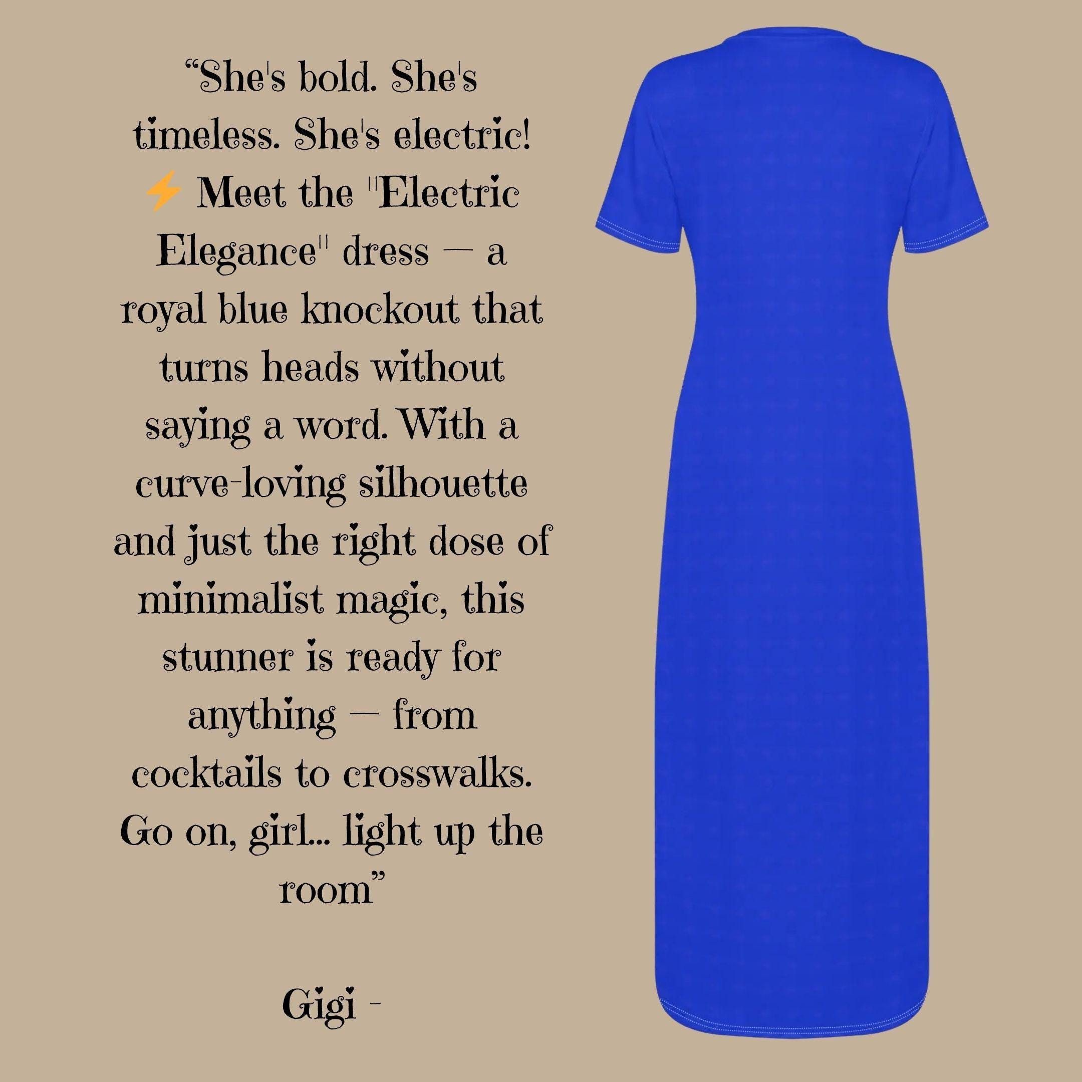 Step into your power in our Electric Elegance T-Shirt Maxi Dress, where bold meets effortless. Drenched in a stunning royal blue hue, this dress is your ultimate canvas for self-expression. Whether you're headed to a rooftop dinner or styling it with sneakers for weekend ease, this versatile piece gives main character energy without even trying. Made with a soft stretch fabric, this maxi hugs your curves just right and moves with you like a second skin. A minimalist dream for the modern woman who knows less is more. π Why You'll Love It: π΅ Striking solid royal blue - bold, rich, and unforgettable π Soft-stretch fabric with a curve-friendly cut π§΅ Clean, modern stitching on sleeve cuffs and hem β¨ Easy to dress up or down for any occasion π Works with heels, sandals, or sneakers π A perfect base layer for accessories or jackets π Comfortable for all-day wear