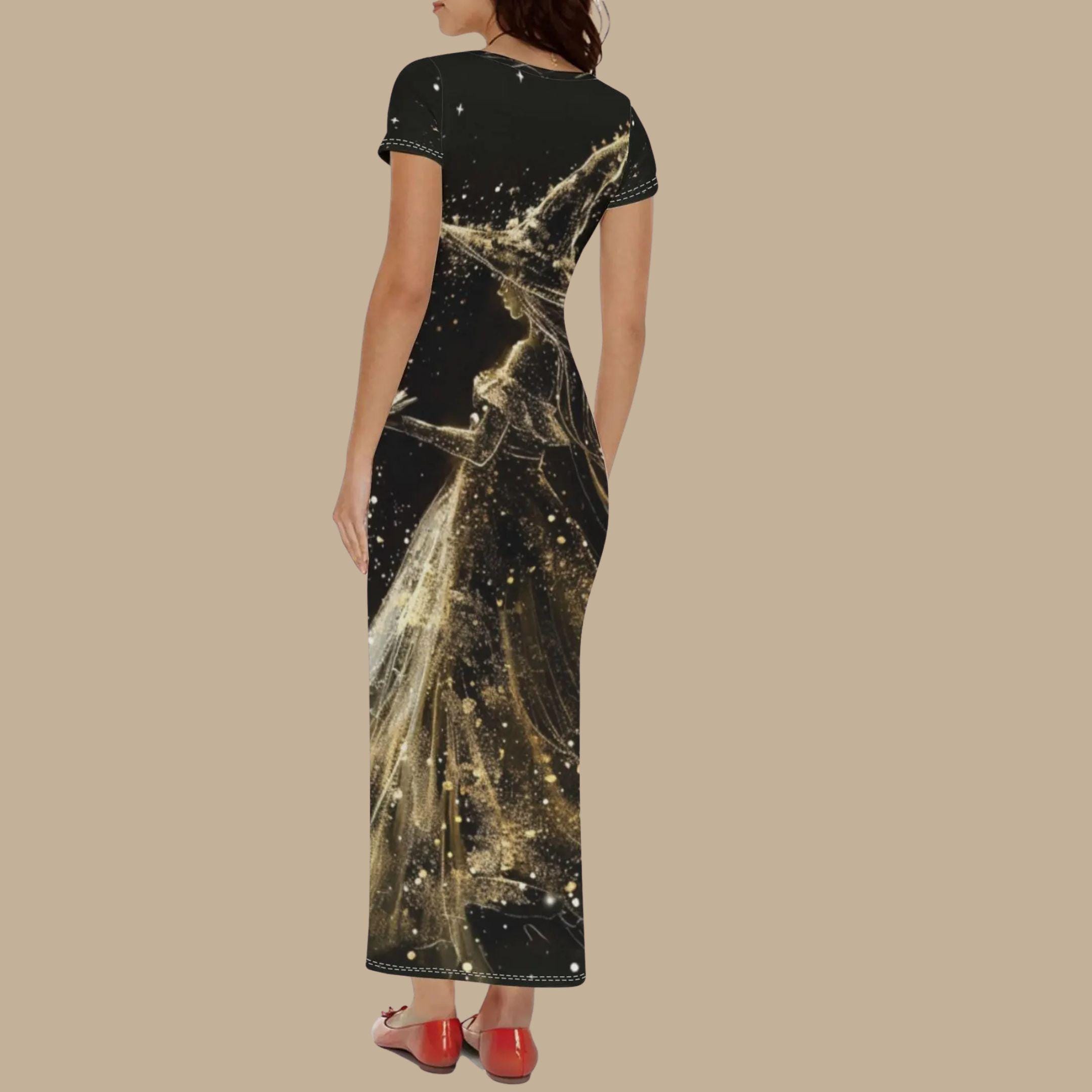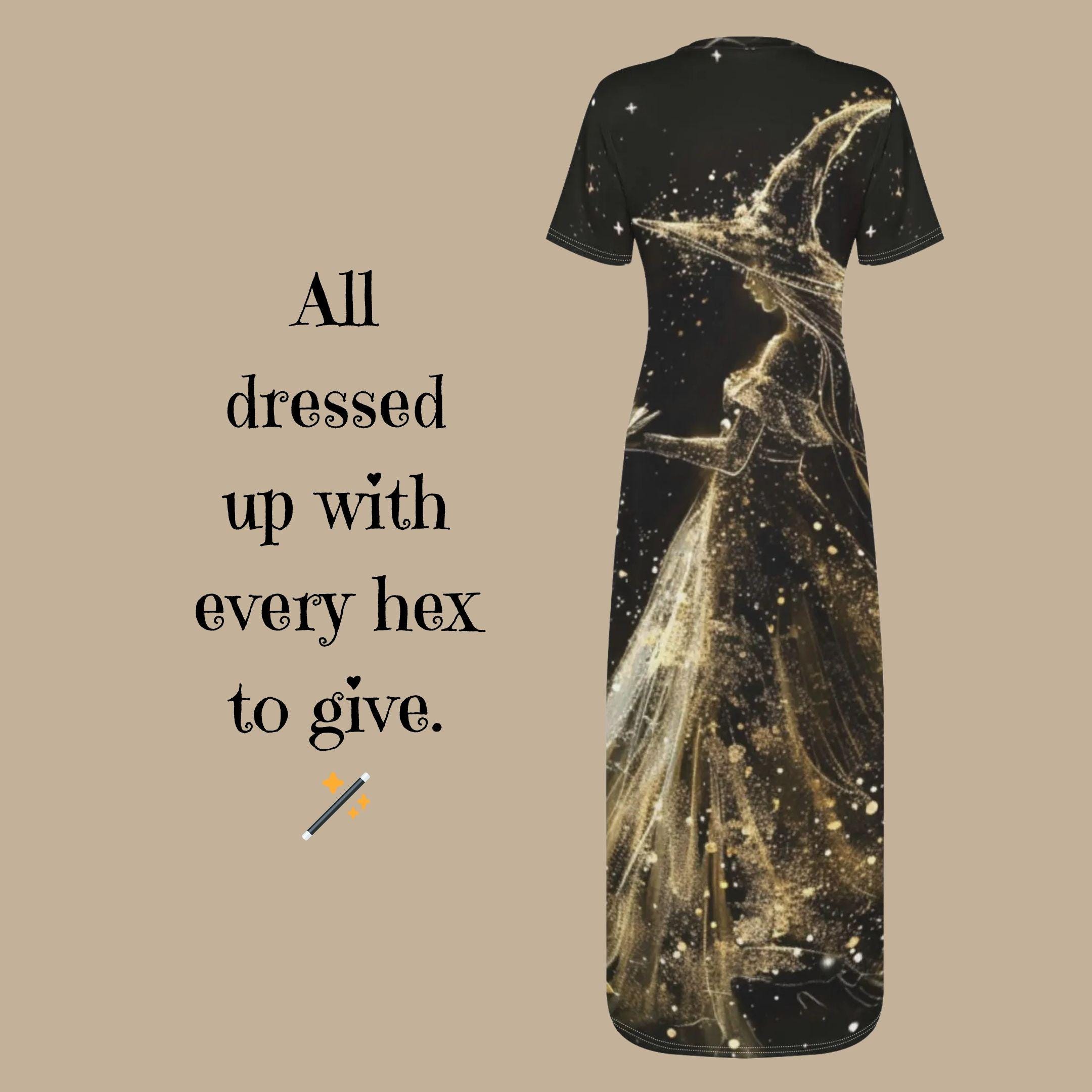 ✨ Make an enchanting entrance this Halloween with the Midnight Sorceress Maxi Dress, where celestial glam meets gothic charm!