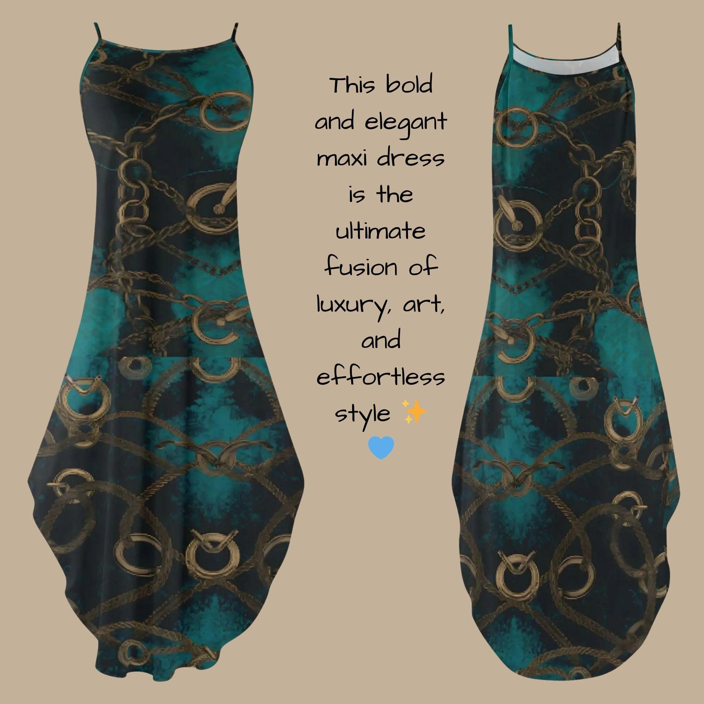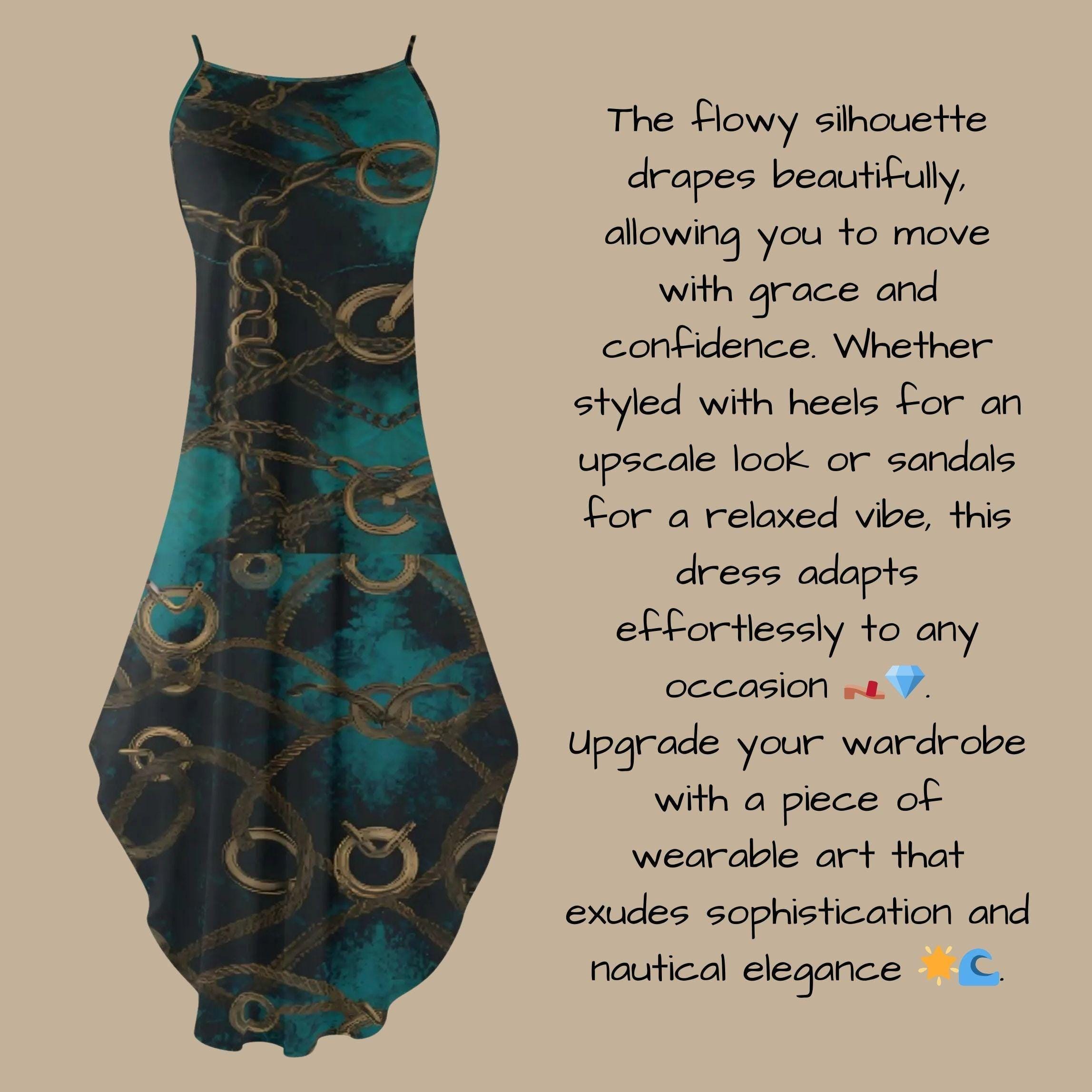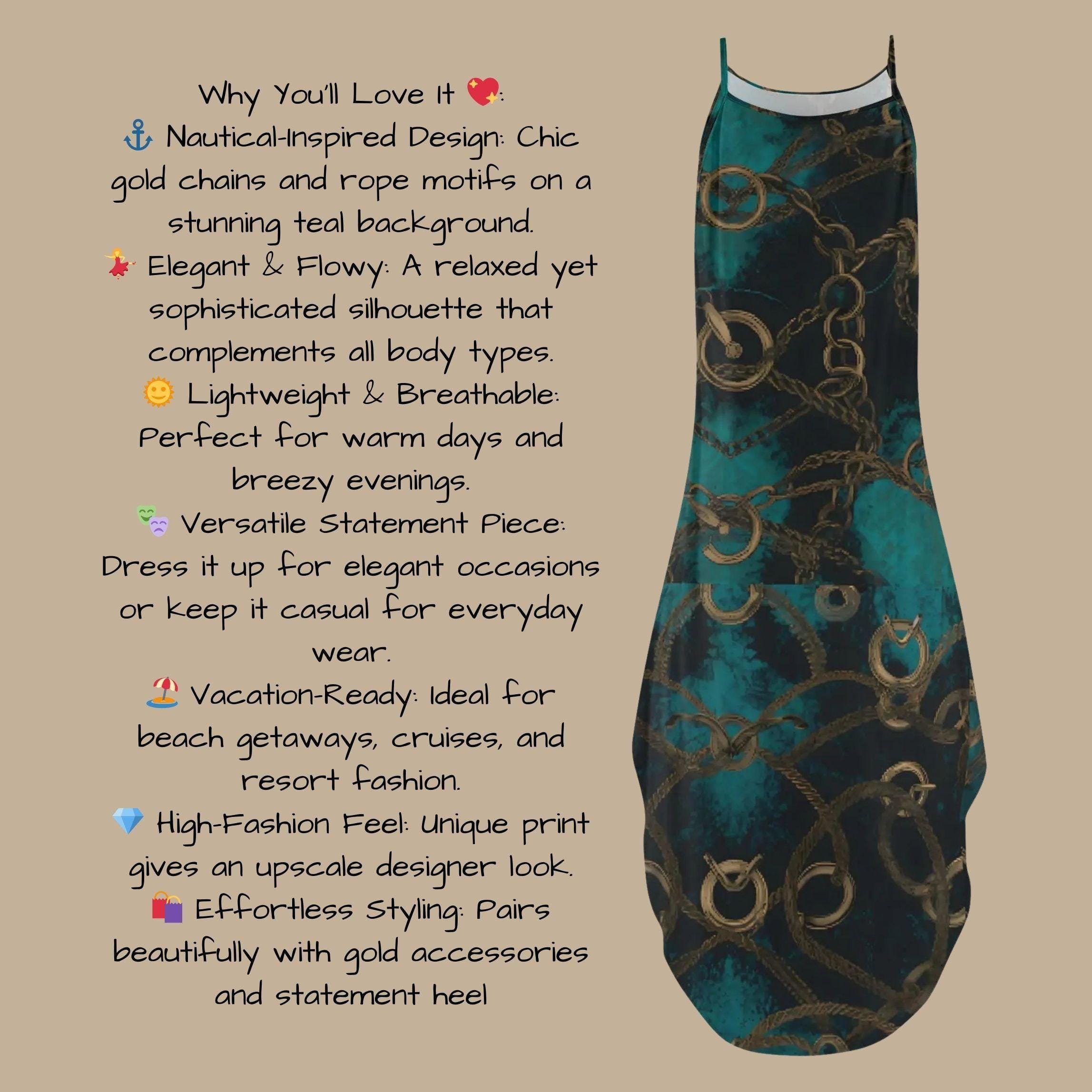 π Luxury Meets Nautical Elegance! π Turn heads in this stunning teal and gold chain print maxi dress, designed for those who love bold, high-fashion statements. πβ¨ The intricate gold chain details give off a sophisticated nautical-inspired vibe, perfect for beach vacations, special evenings, or simply standing out in style. π₯ Why You'll Love It: π₯ β Flattering Fit: Flows effortlessly over the body for a chic silhouette. β Luxurious Print: Rich teal base with elegant gold chain details. β Versatile Styling: Wear it as a casual statement piece or a glamorous night-out dress. β Breathable & Comfortable: Lightweight fabric ideal for warm days and breezy nights. β Head-Turning Design: Unique and exclusive print for fashion-forward individuals. π Step into luxury and make every outing feel like a runway!