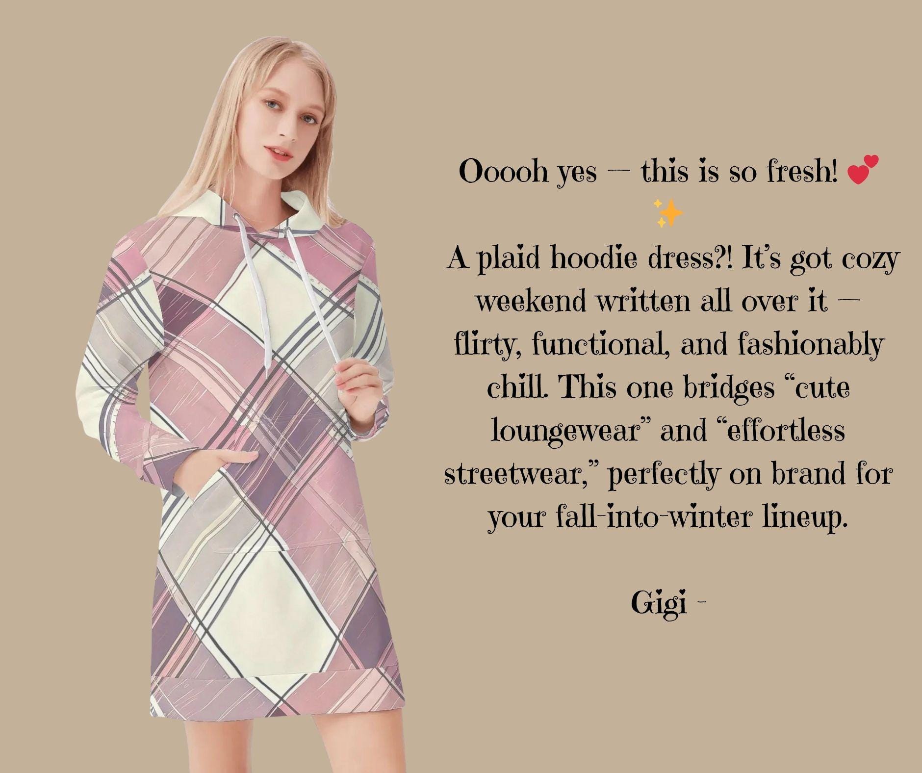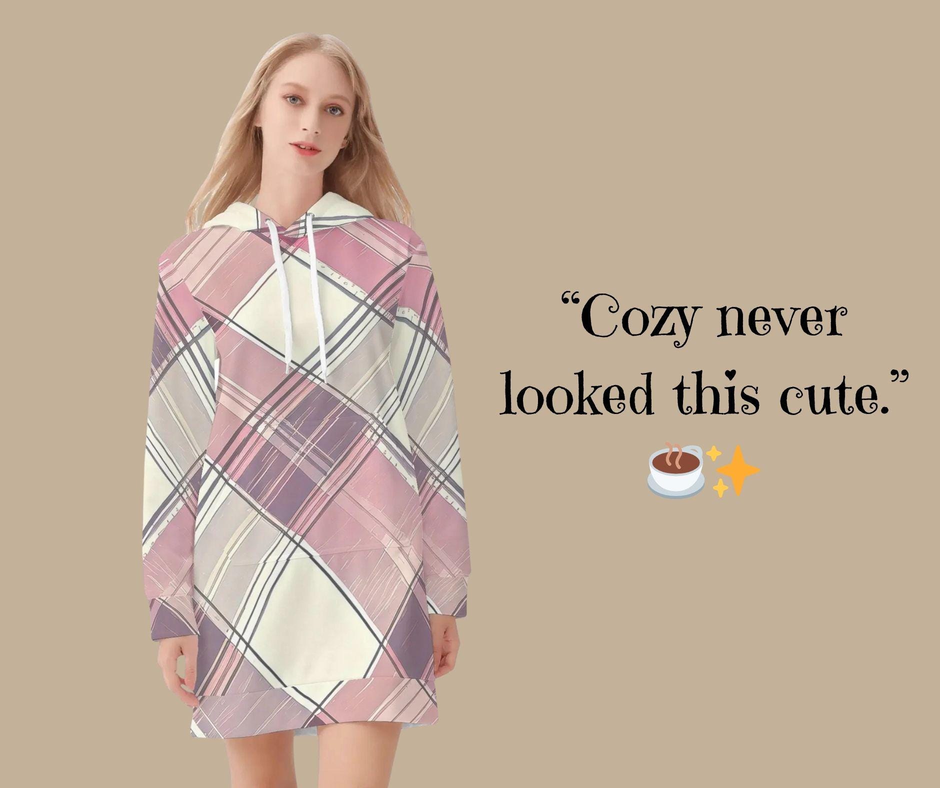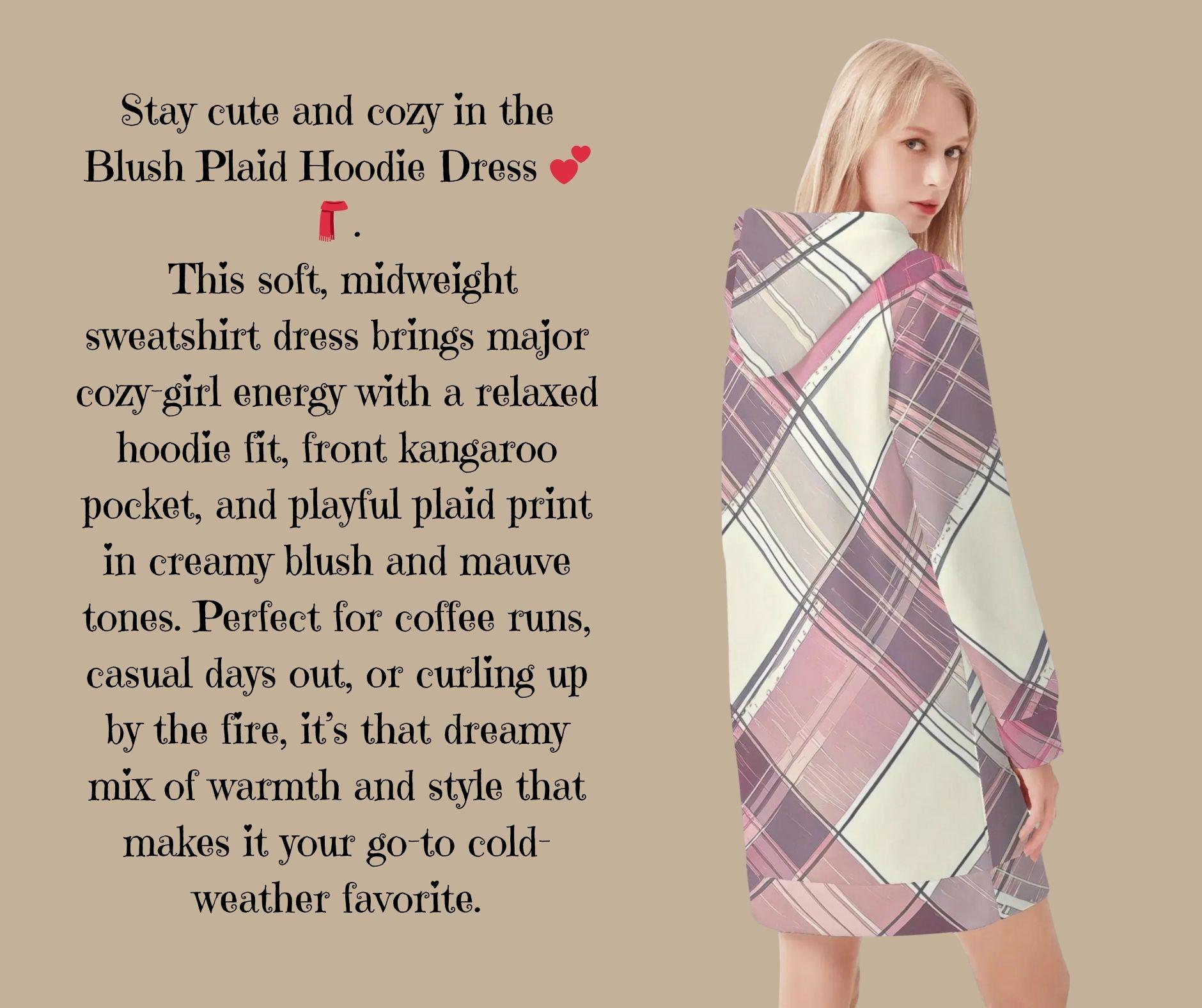 Wrap yourself in cozy-chic comfort with our Blush Plaid Hoodie Sweatshirt Dress — a soft, feminine take on winter’s favorite pattern. The classic blush and ivory plaid gives this hoodie dress a dreamy, preppy feel, while the relaxed fit, kangaroo pocket, and drawstring hood keep it effortlessly wearable from couch to café. ❄️✨
