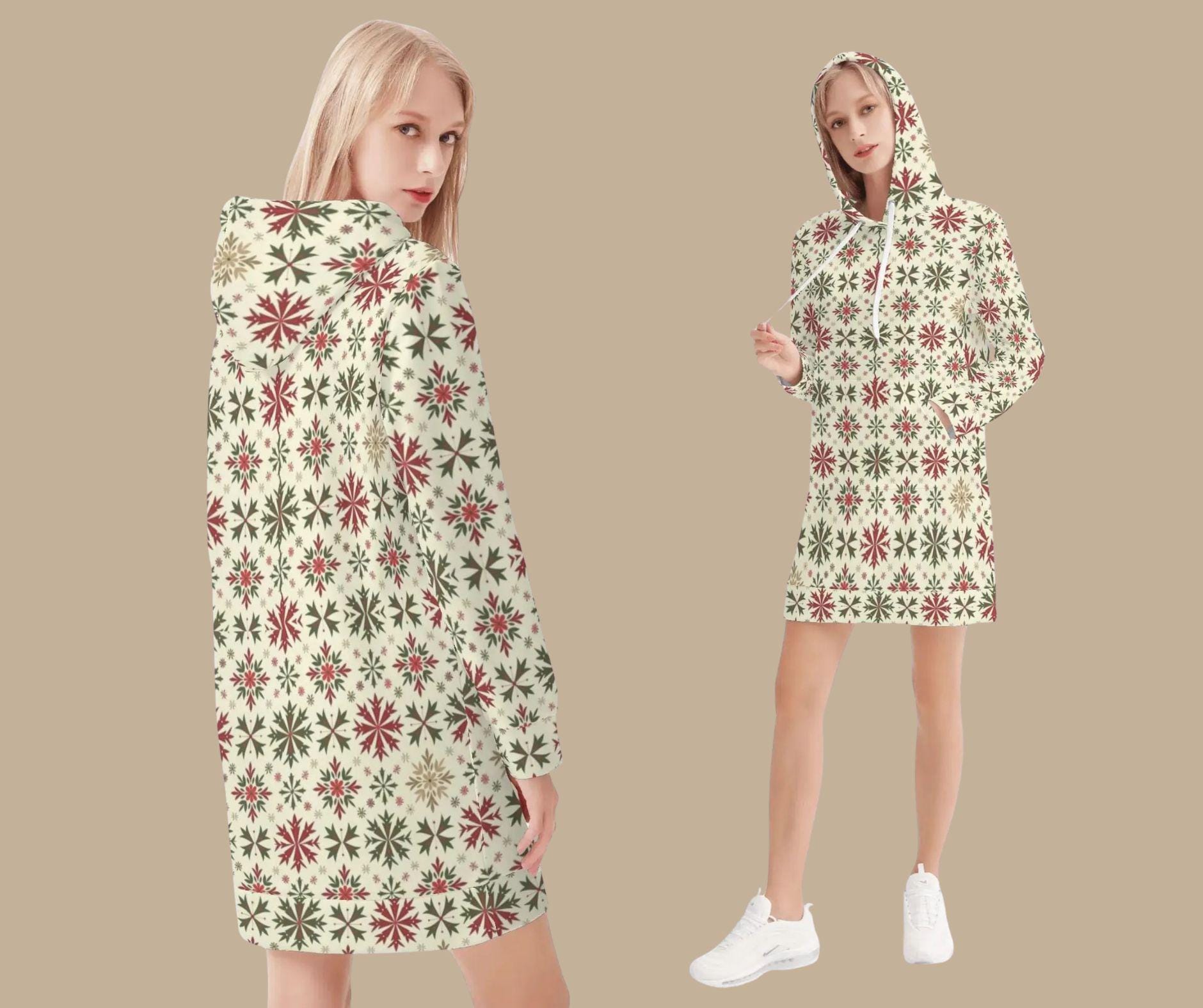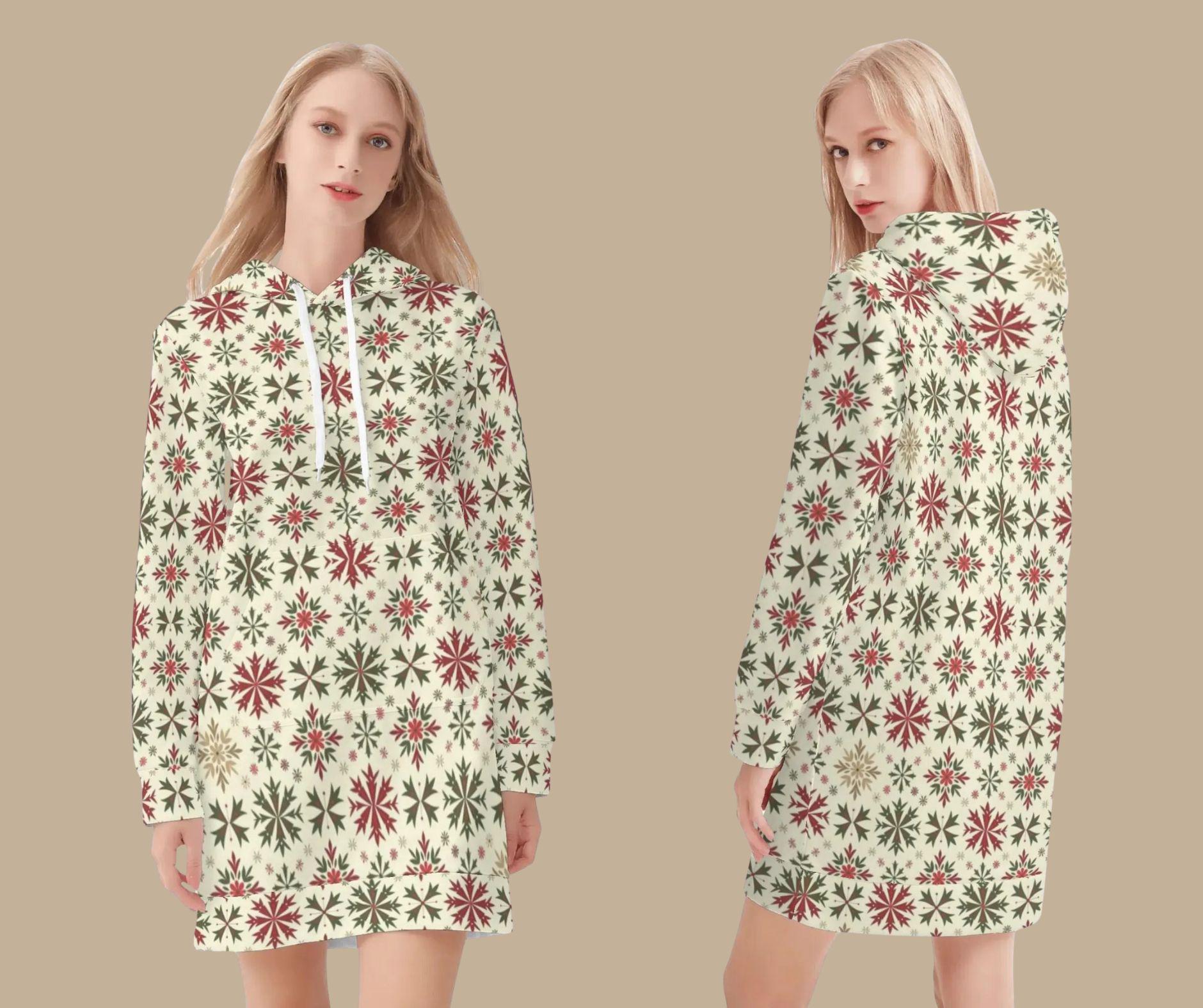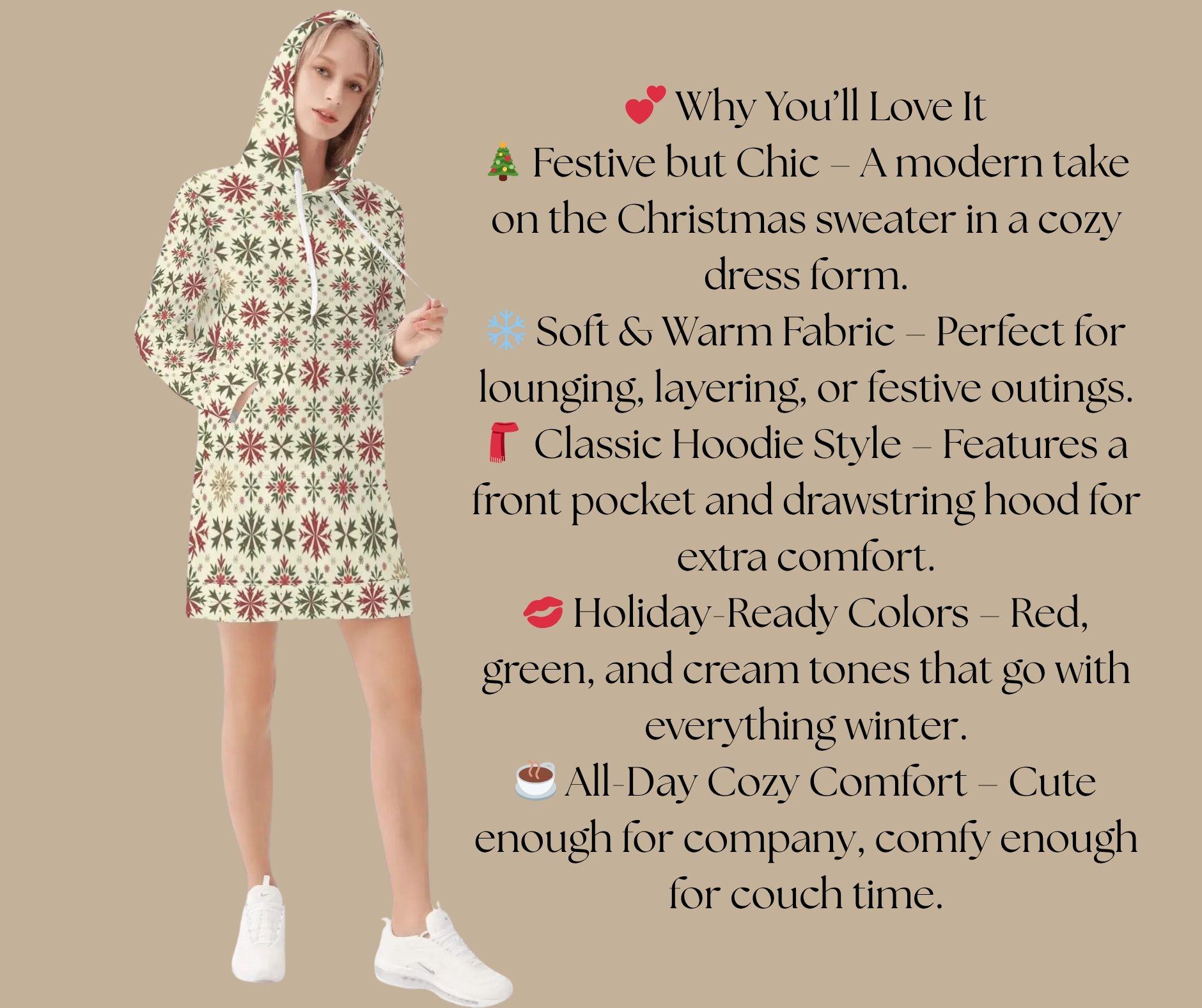 Wrap yourself in holiday cheer with our Festive Snowflake Hoodie Dress, where warmth meets whimsy. Featuring a classic cream base with vintage-style red and green snowflakes, this hoodie dress feels like a cozy Christmas blanket you can actually wear. Perfect for fireside mornings, holiday parties, or a festive night stroll under twinkling lights. 🎁