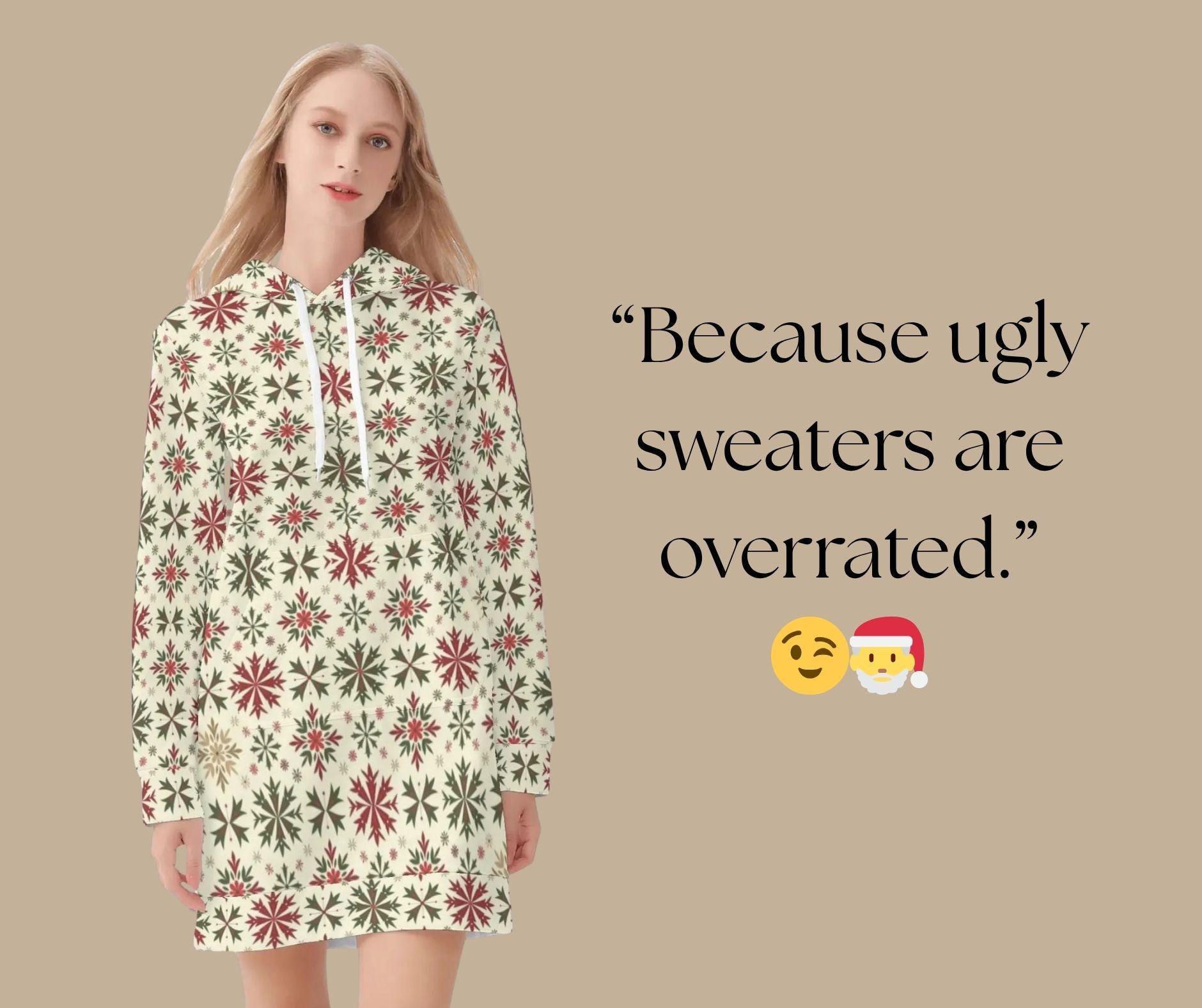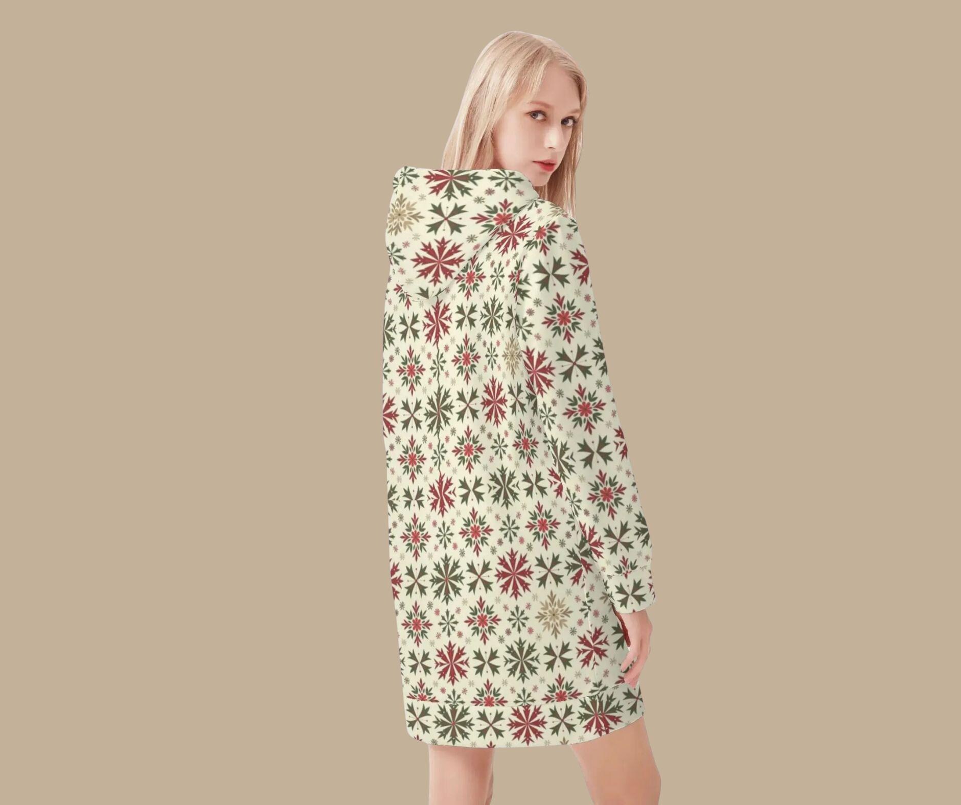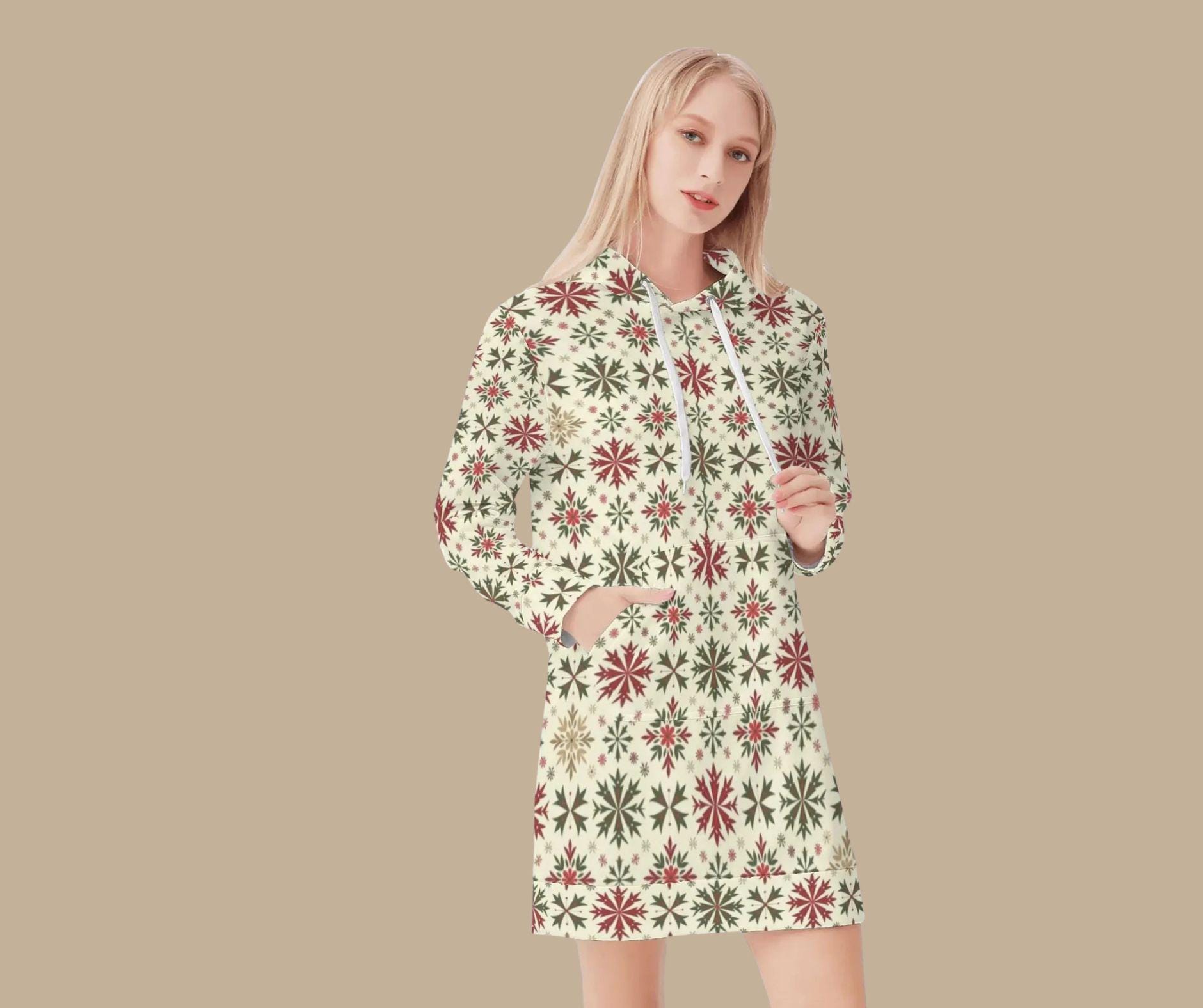 Wrap yourself in holiday cheer with our Festive Snowflake Hoodie Dress, where warmth meets whimsy. Featuring a classic cream base with vintage-style red and green snowflakes, this hoodie dress feels like a cozy Christmas blanket you can actually wear. Perfect for fireside mornings, holiday parties, or a festive night stroll under twinkling lights. 🎁