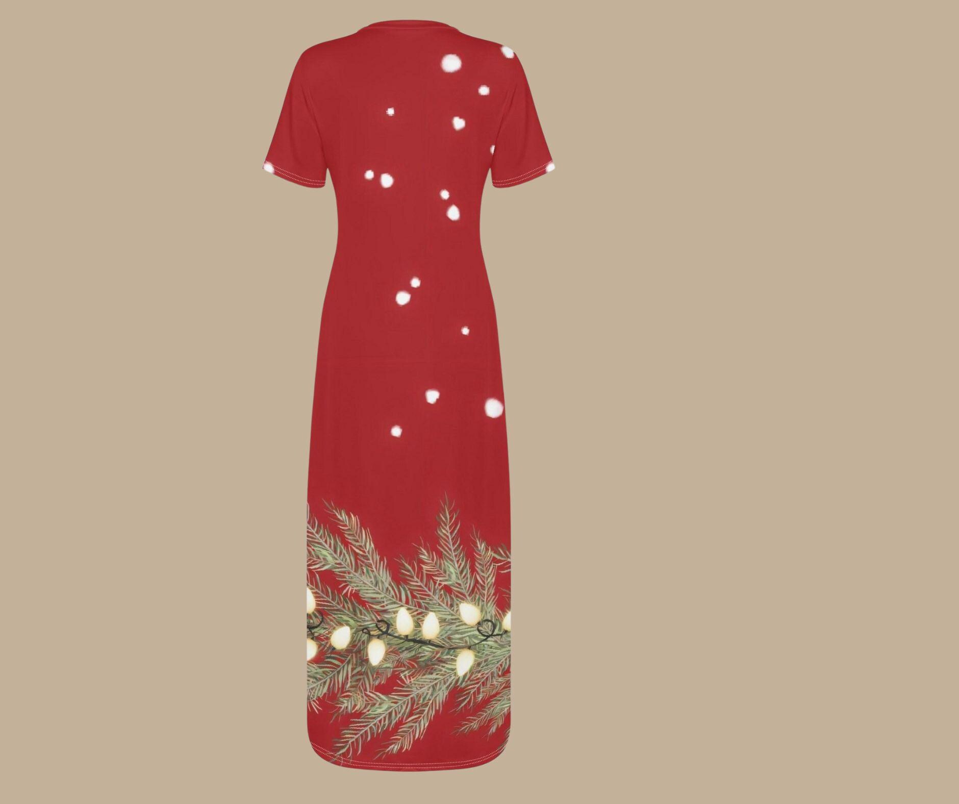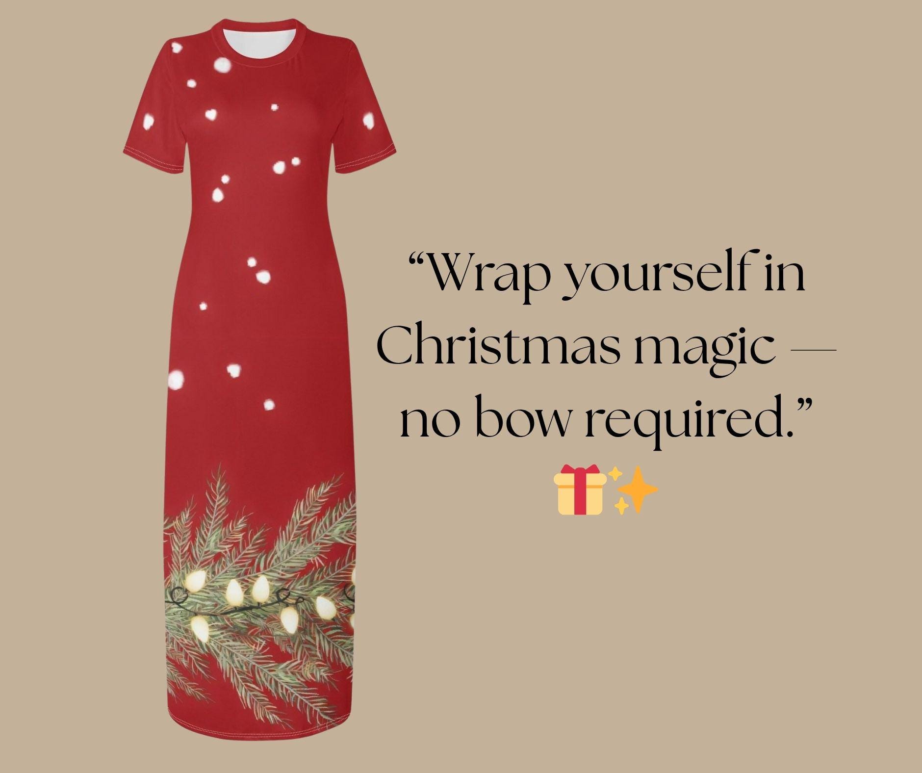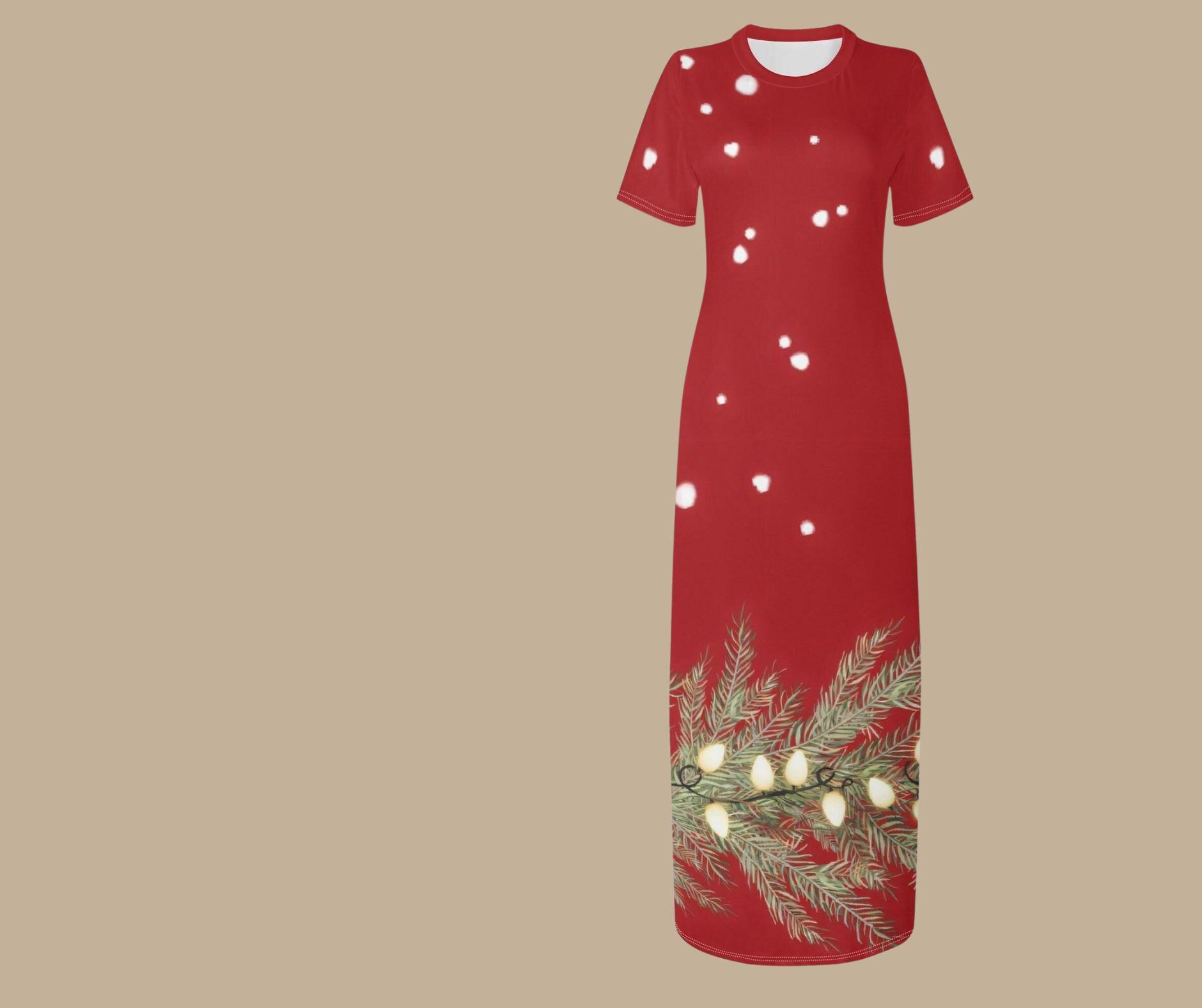 Made from smooth, breathable fabric, this t-shirt style maxi dress offers the perfect blend of comfort and holiday glam. Whether you’re sipping cocoa by the fire, hosting Christmas dinner, or attending a winter soirée, this dress will have you glowing brighter than the tree.
