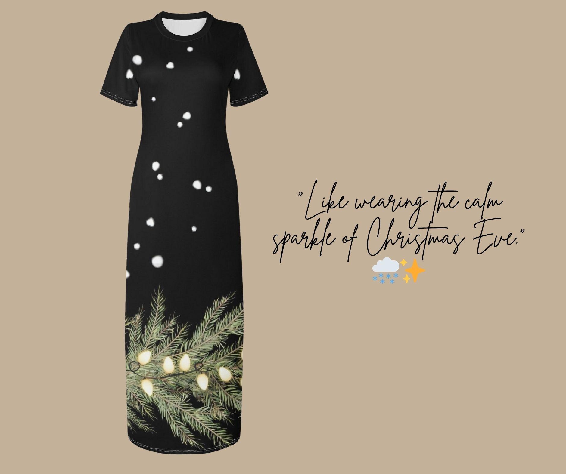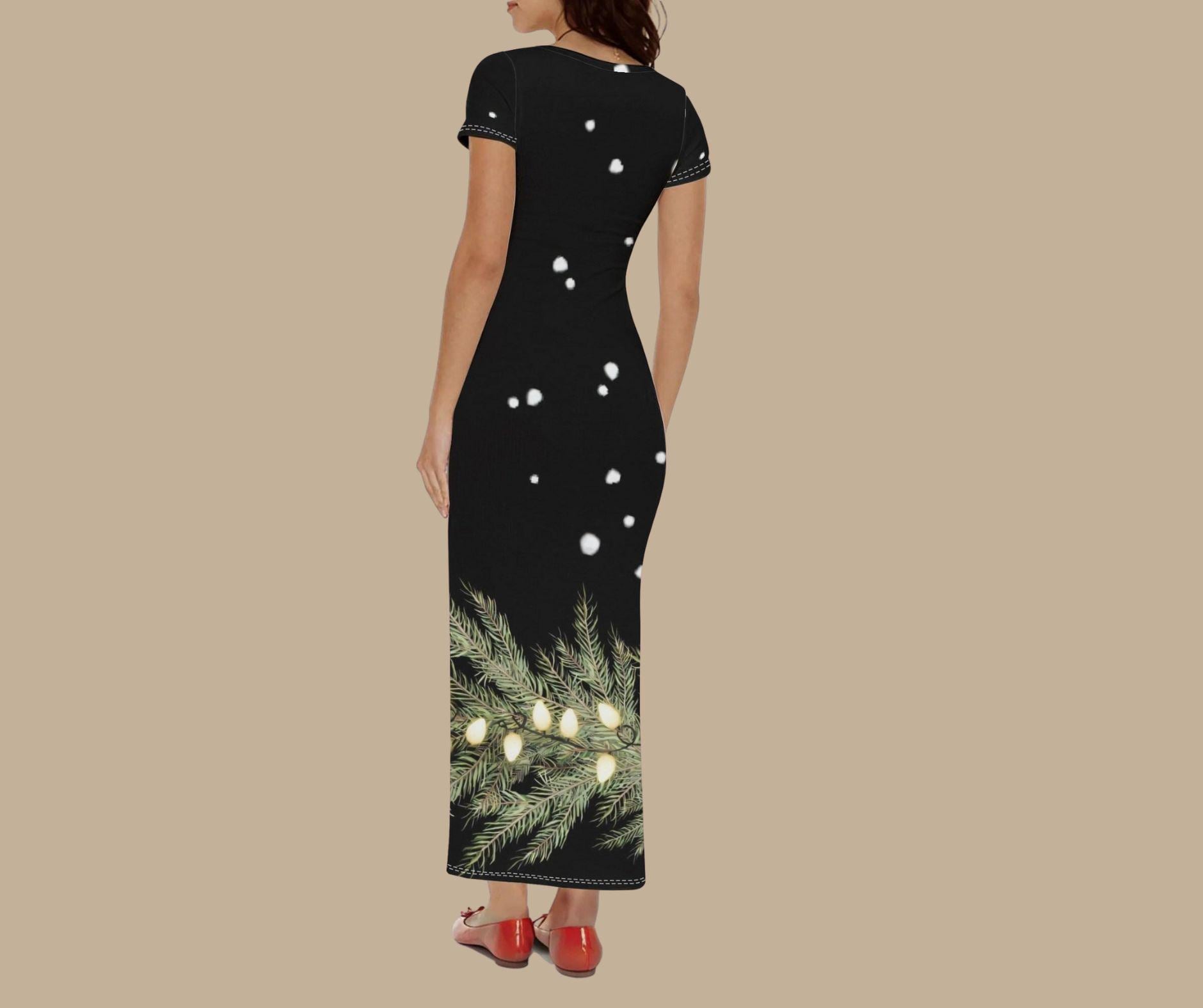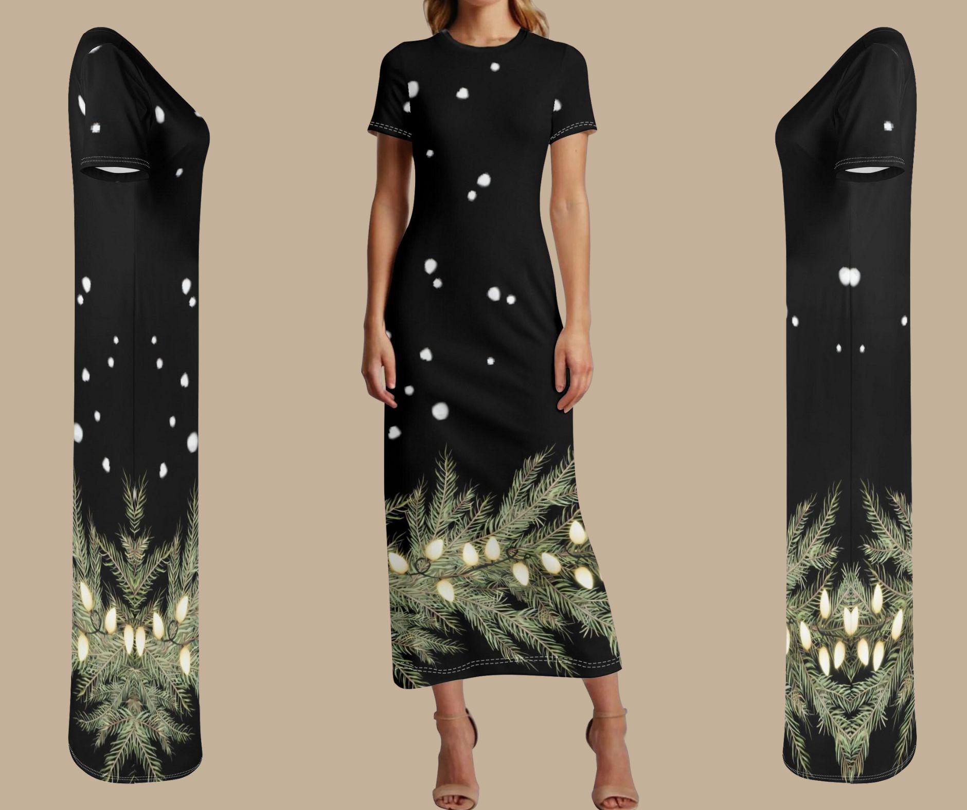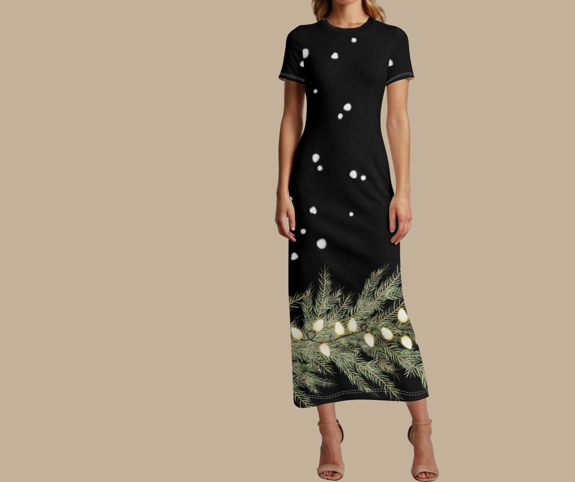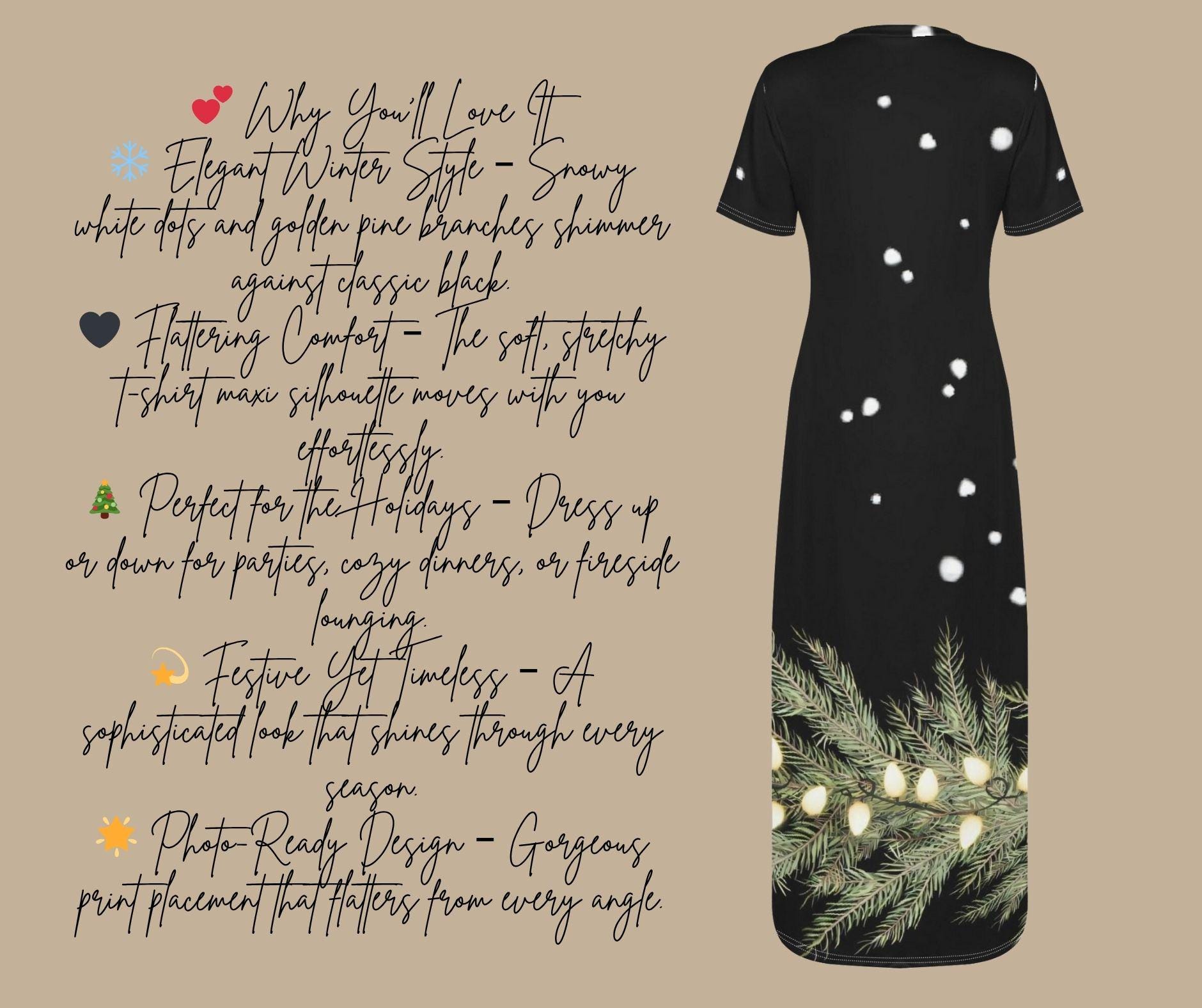 Wrap yourself in holiday magic with the Black Snowlit Pine Maxi Dress — a stunning mix of modern sophistication and festive spirit. 🌲❄️