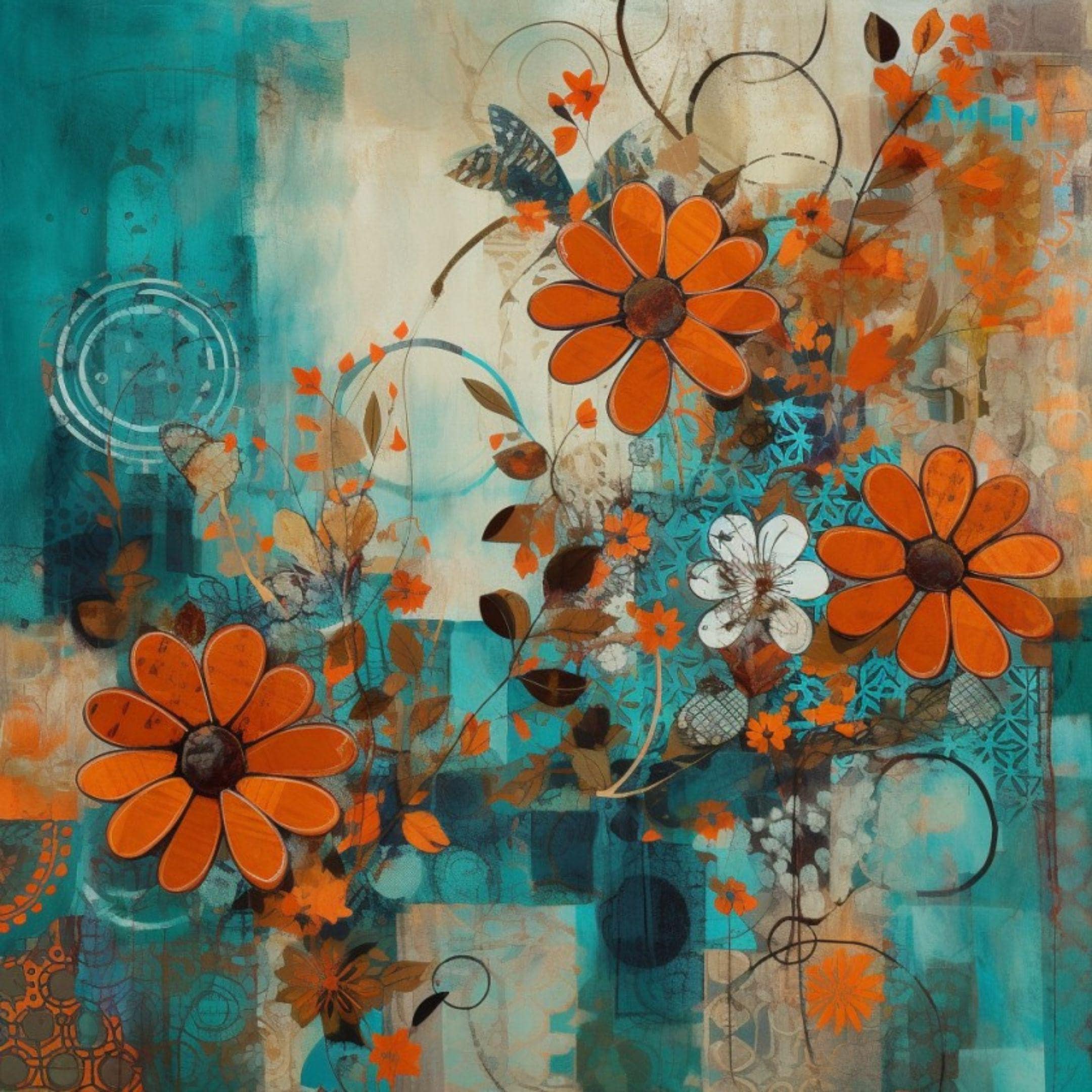 Step into effortless sophistication with this teal and orange botanical midi dress — a modern vintage piece designed for women who love art-forward fashion with personality.