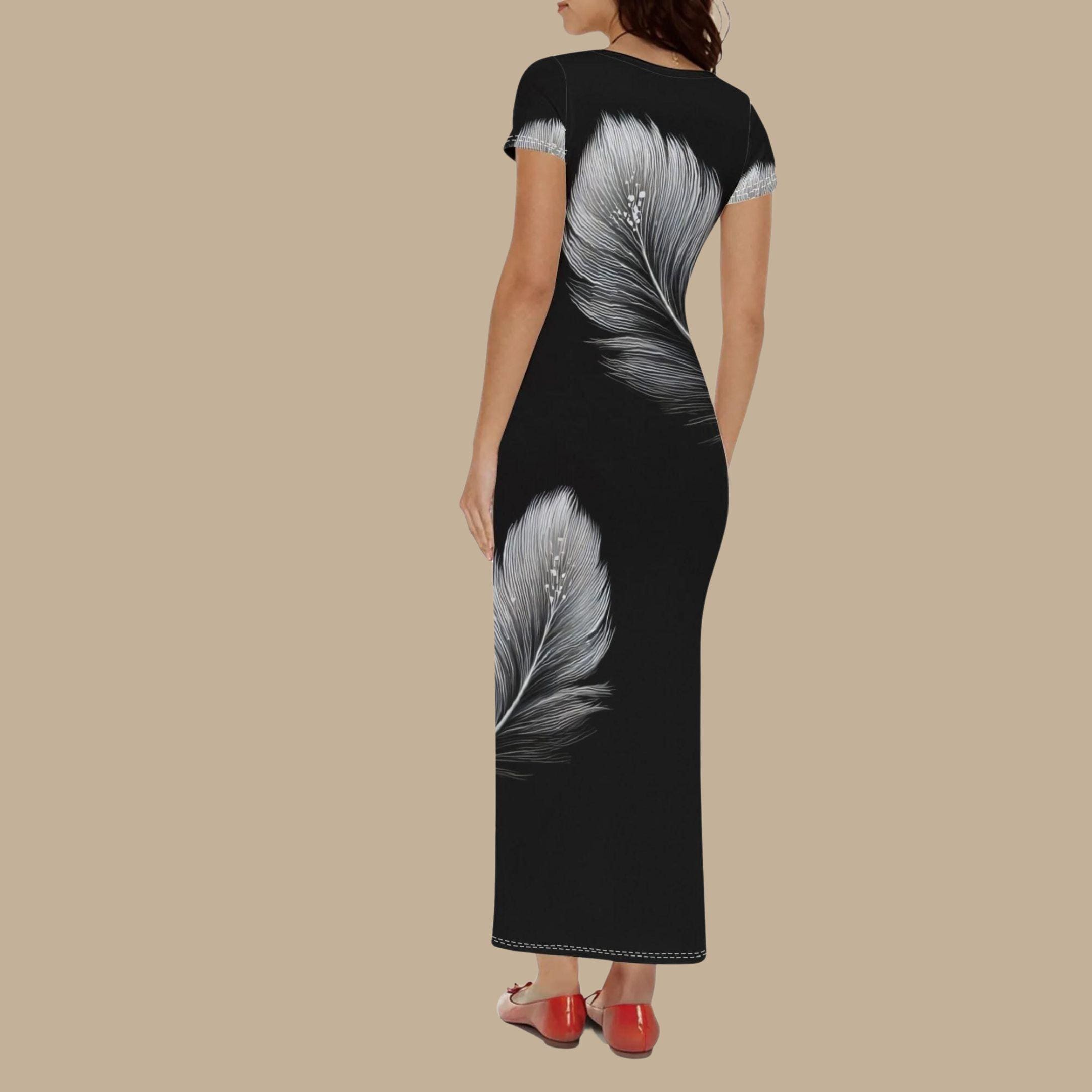 Striking, sophisticated, and effortlessly modern, the Silver Feather Noir Dress from The Harbor Edit is designed for women who love bold simplicity and artistic elegance.