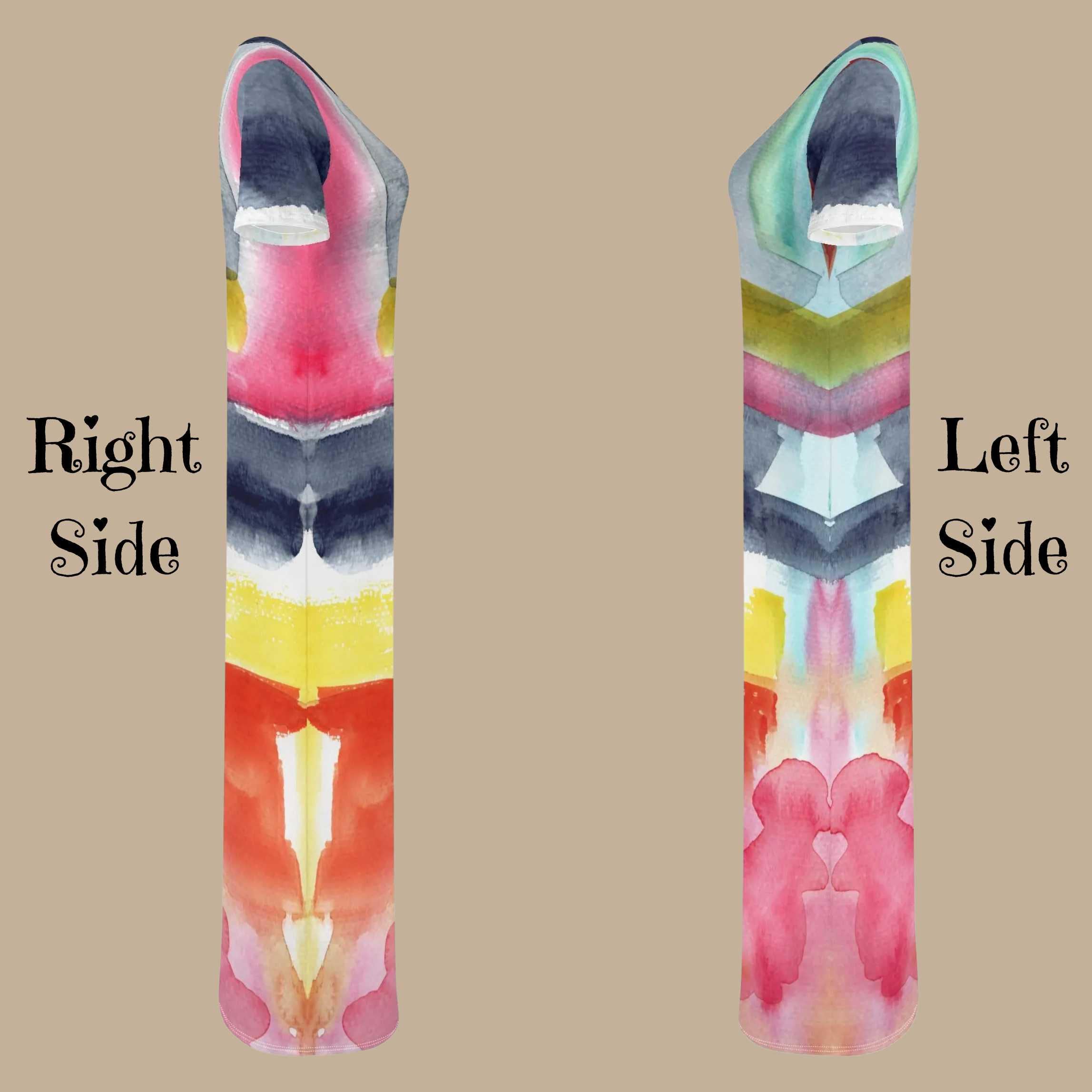 The Kimber’s Painted Horizon Maxi Dress is a stunning wearable art piece created from the original watercolor artwork of our talented friend Kimber.