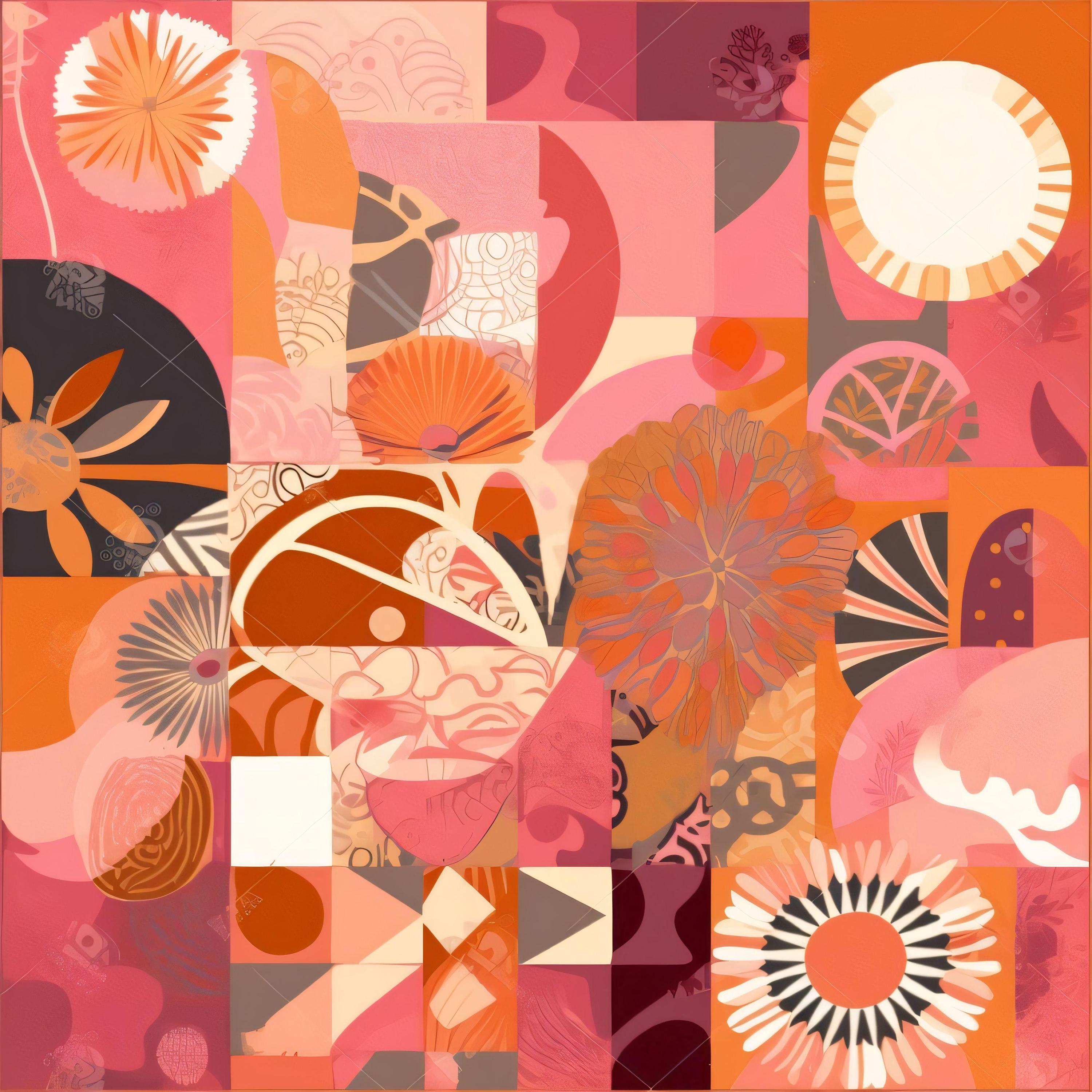 • Warm coral and botanical color palette