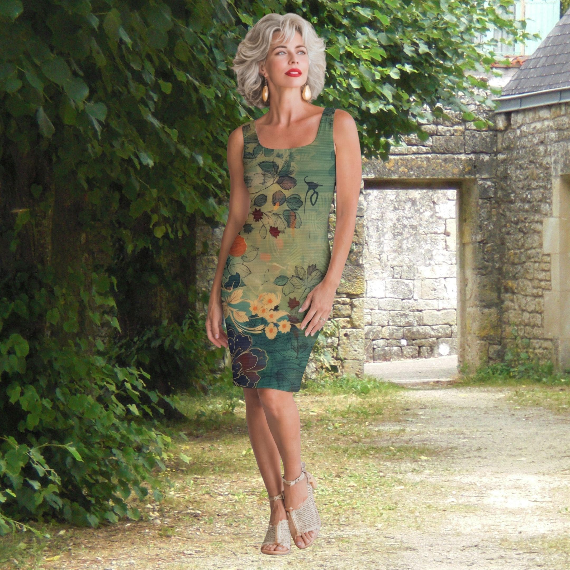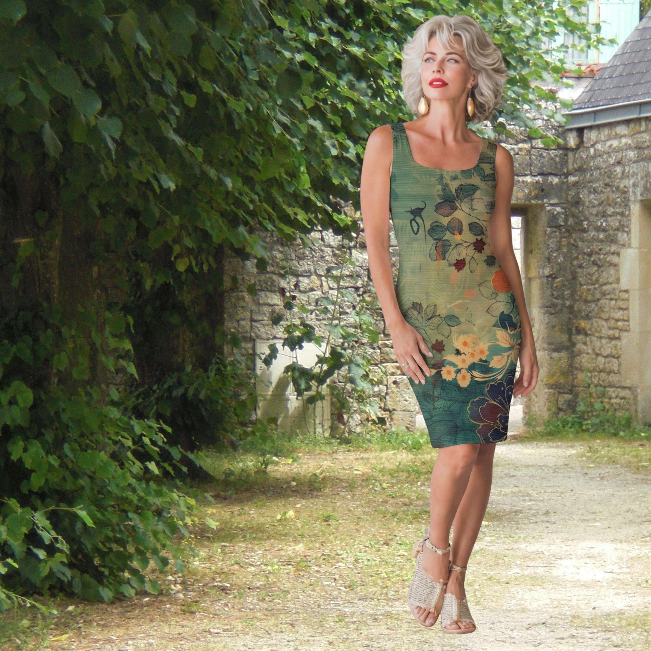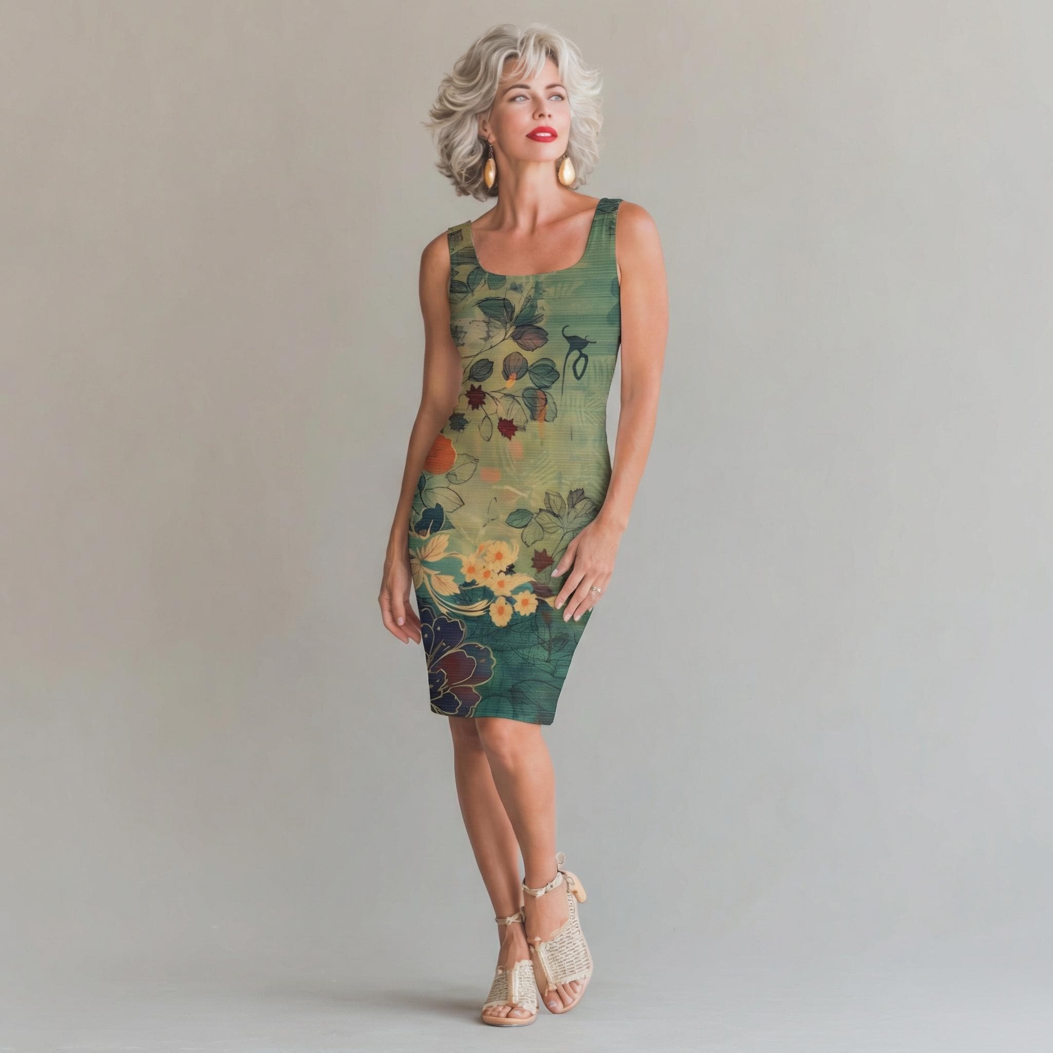 The sleeveless, body-skimming silhouette offers a clean and modern shape, allowing the artwork to take center stage. Its simplicity is its strength — polished, flattering, and endlessly wearable.