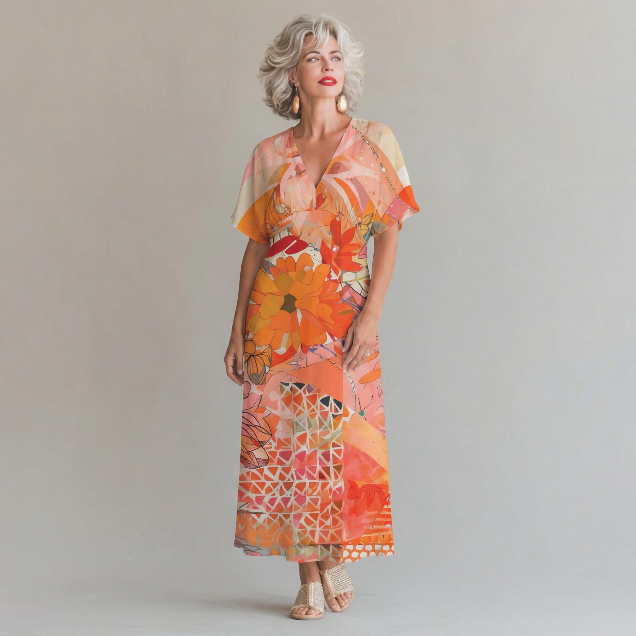 The flowing short sleeves bring softness and movement, making this dress ideal for warm days, travel, or simply feeling your best wherever you are.