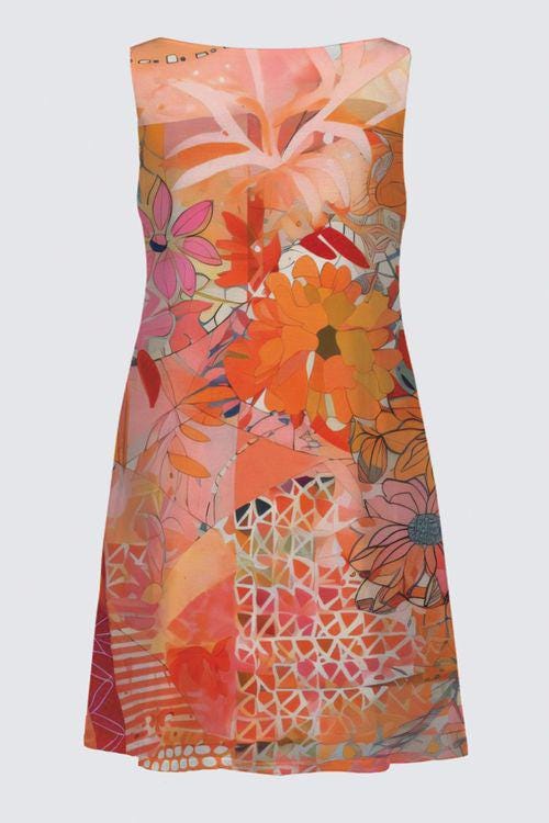 The artwork is alive with warm tones of orange, coral, peach, and soft pink β layered with florals and abstract textures that feel joyful, bold, and uplifting.