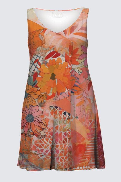 Featuring a soft A-line silhouette, this dress gently skims the body while allowing for movement and breathability. The sleeveless design and flattering V-neckline create a balanced, elongating shape that feels both relaxed and refined.