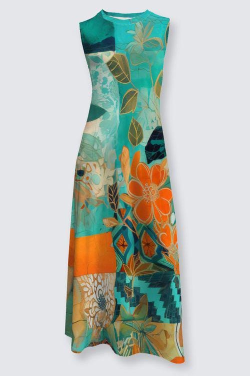Featuring a timeless sleeveless silhouette with a soft, flowing flare, this dress offers both comfort and quiet sophistication. The gentle movement of the skirt creates an elegant drape, allowing the fabric to glide naturally with every step.